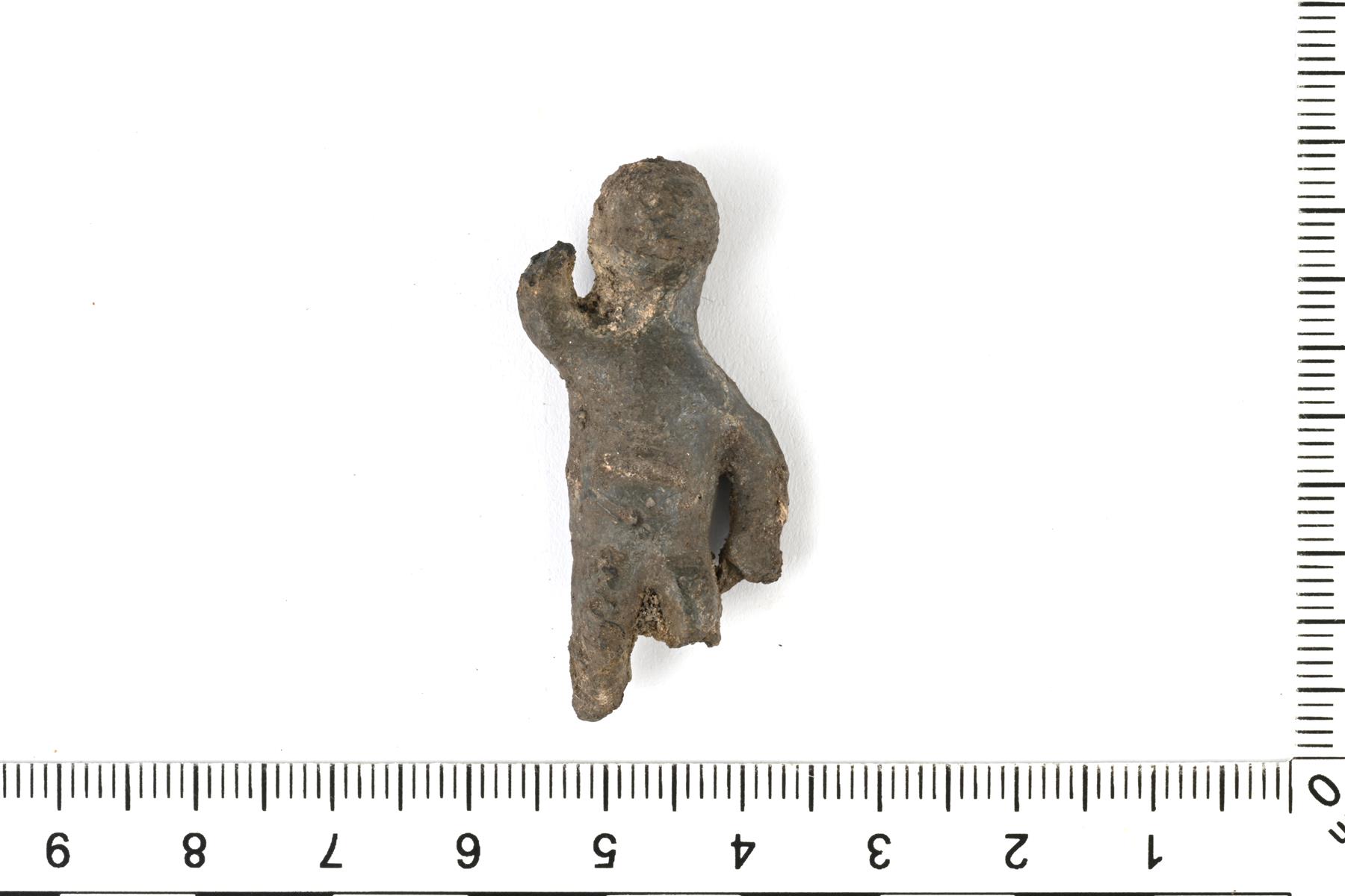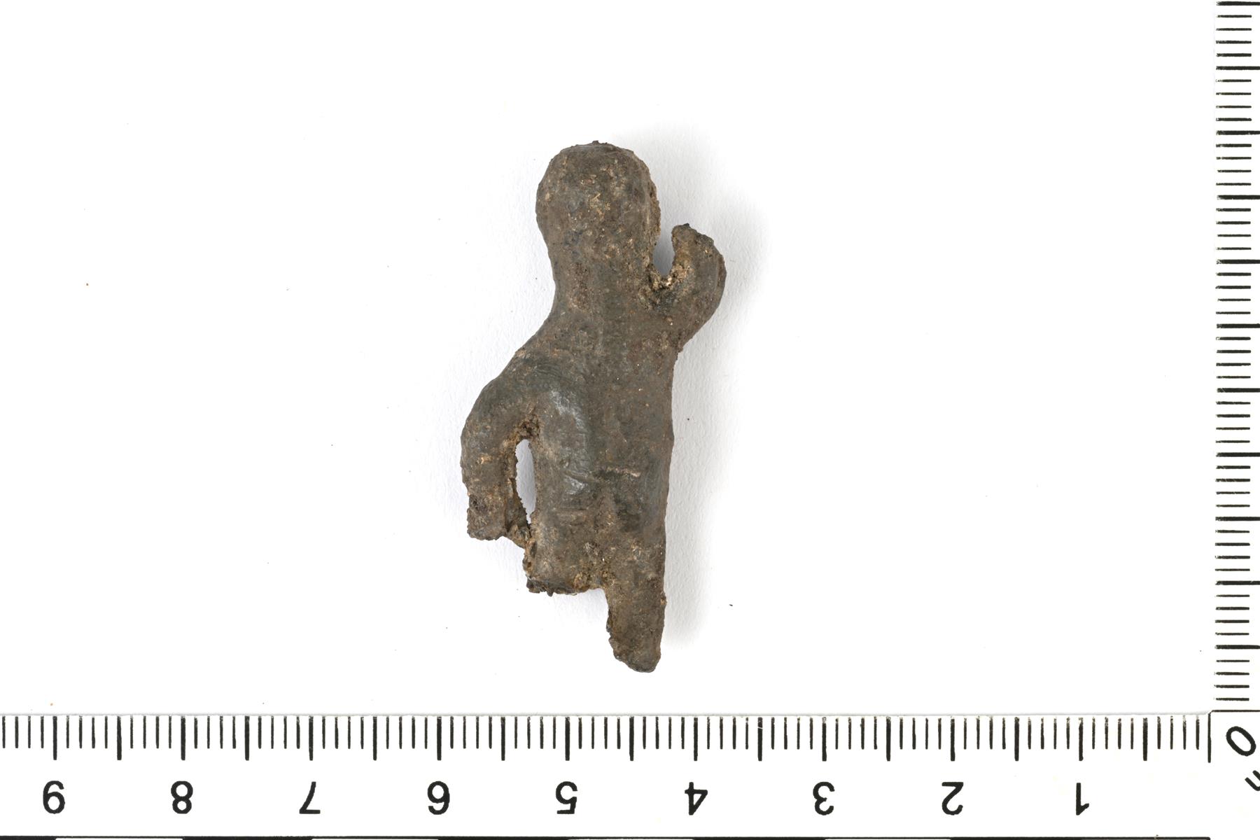 | Karkeatekoinen ja muodoiltaan pelkistetty ihmisfiguuri. Jalat ja kädet ovat hajonneet. Sivua kiertää valinsauman jäänne. | |