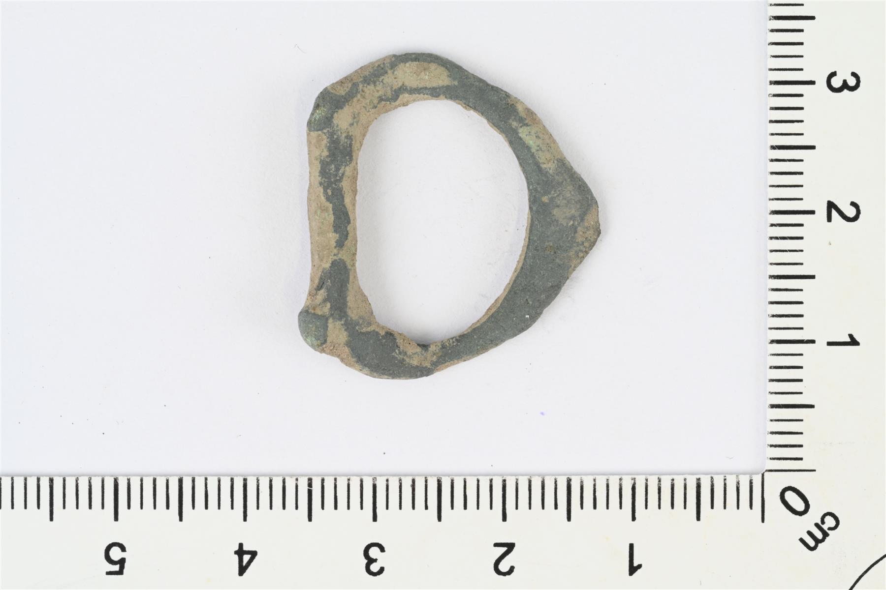 | Vyön- tai hihnansolki. Voi olla katkelma kaksilenkkisestä soljesta. Hieman D-kirjaimen muotoinen, kaareva reuna levenee kolmiomaiseksi. | |