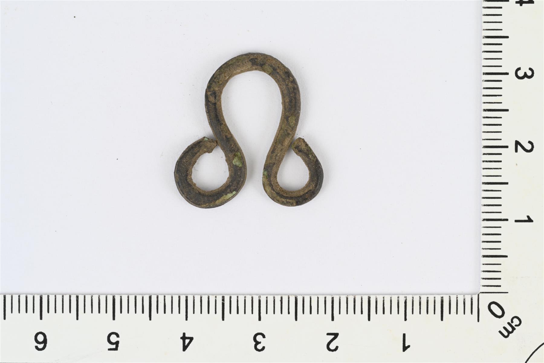 | Ohuesta kupariseosvartaasta tai -langasta taivutettu vaatehakasen vastakappale. Keskikohta taivutettu silmukaksi ja päät lenkeiksi. | |