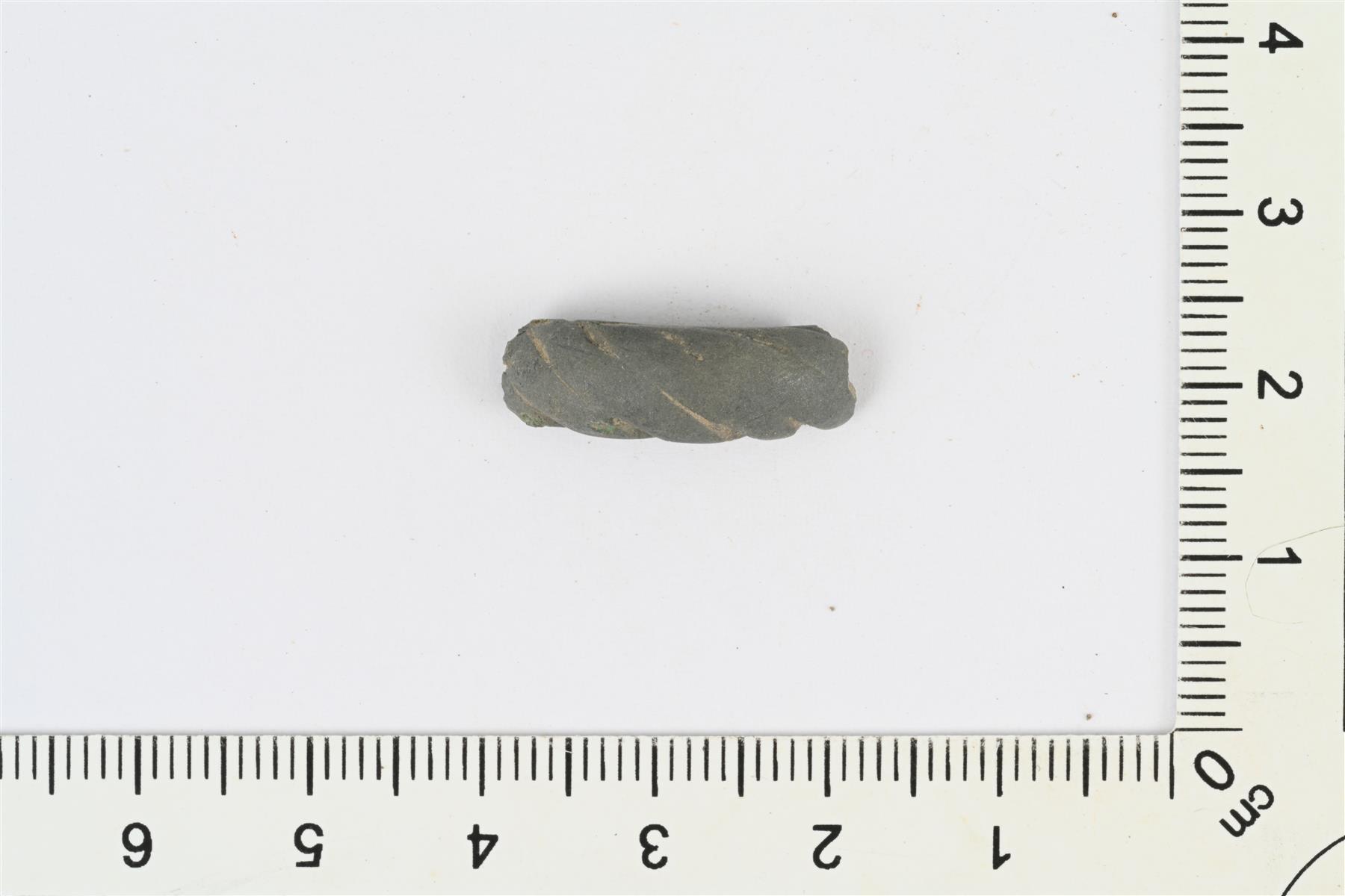 | Mahdollinen rannerenkaan tai muun rengaskorun katkelma. Kaareva valekierteisen vartaan katkelma, poikkileikkaus soikea. | |