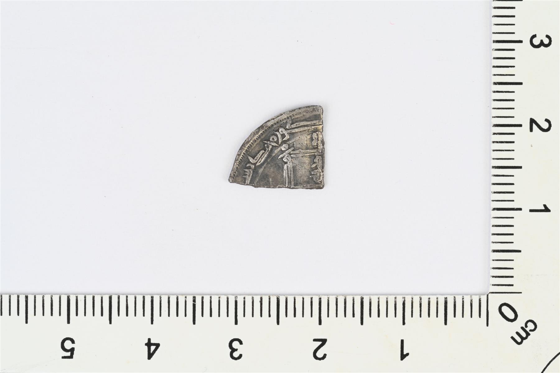 | Abbasidit, Harun al-Rašid, dirhemi, Madinat as-Salam, 180-luku, todennäköisesti 188, eli n. 796–806, todennäköisesti 804/805 jaa. Katkelma. | |