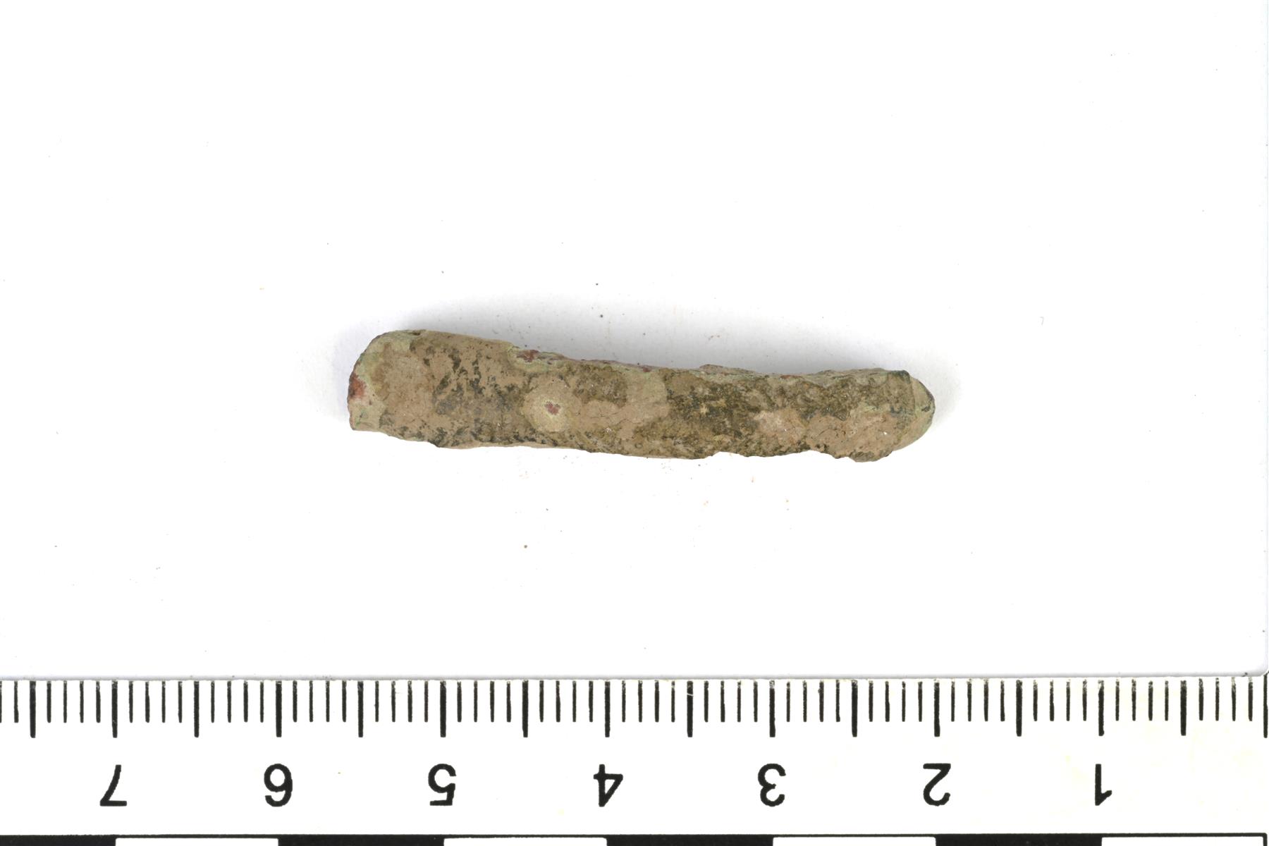 | Mahdollisen nuppipäisen rannerenkaan katkelma. Pahoin kulunut. | |