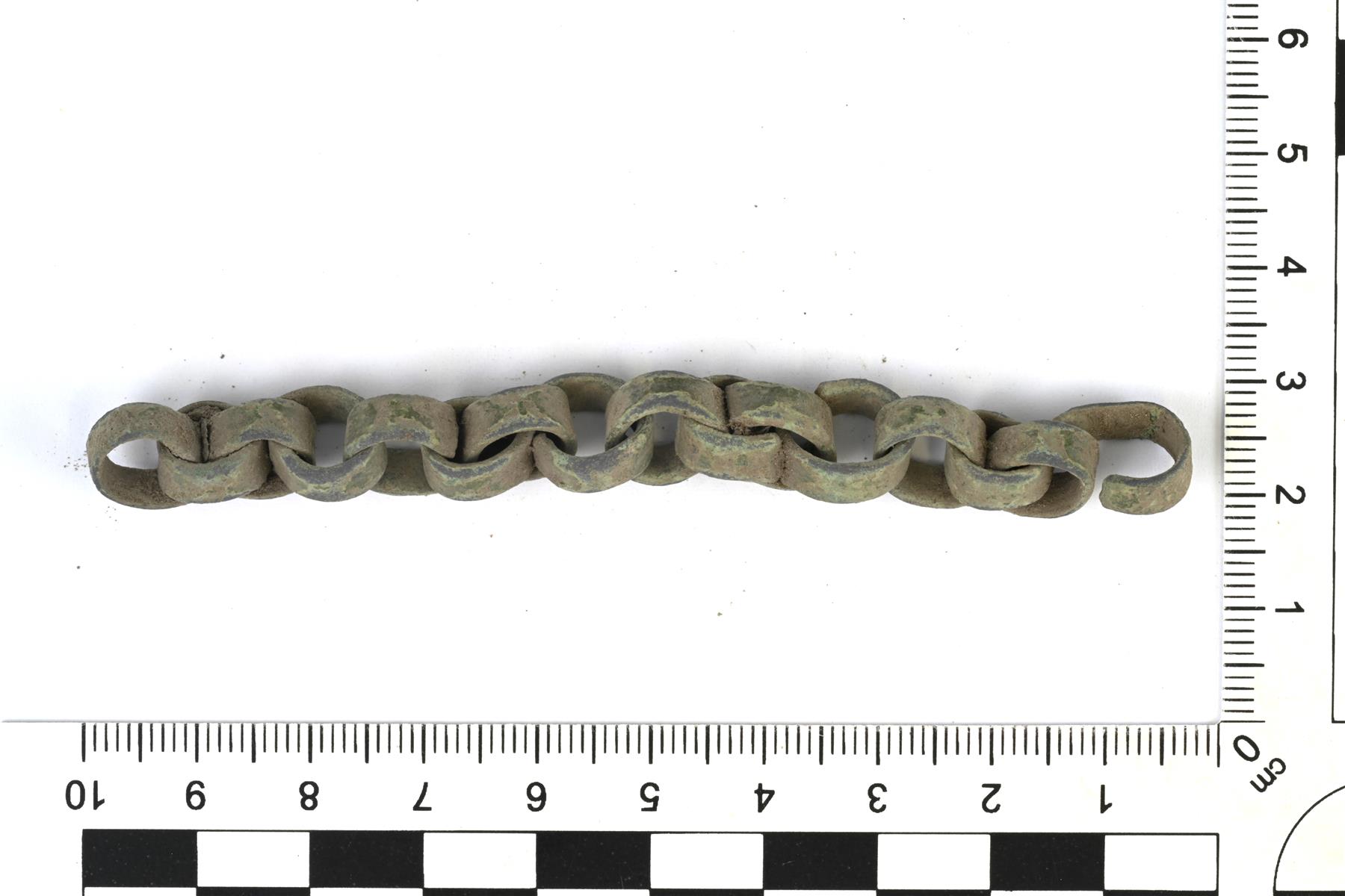 | Nauhamaisista lenkeistä koostuvan kupariseosketjun katkelma. | |
