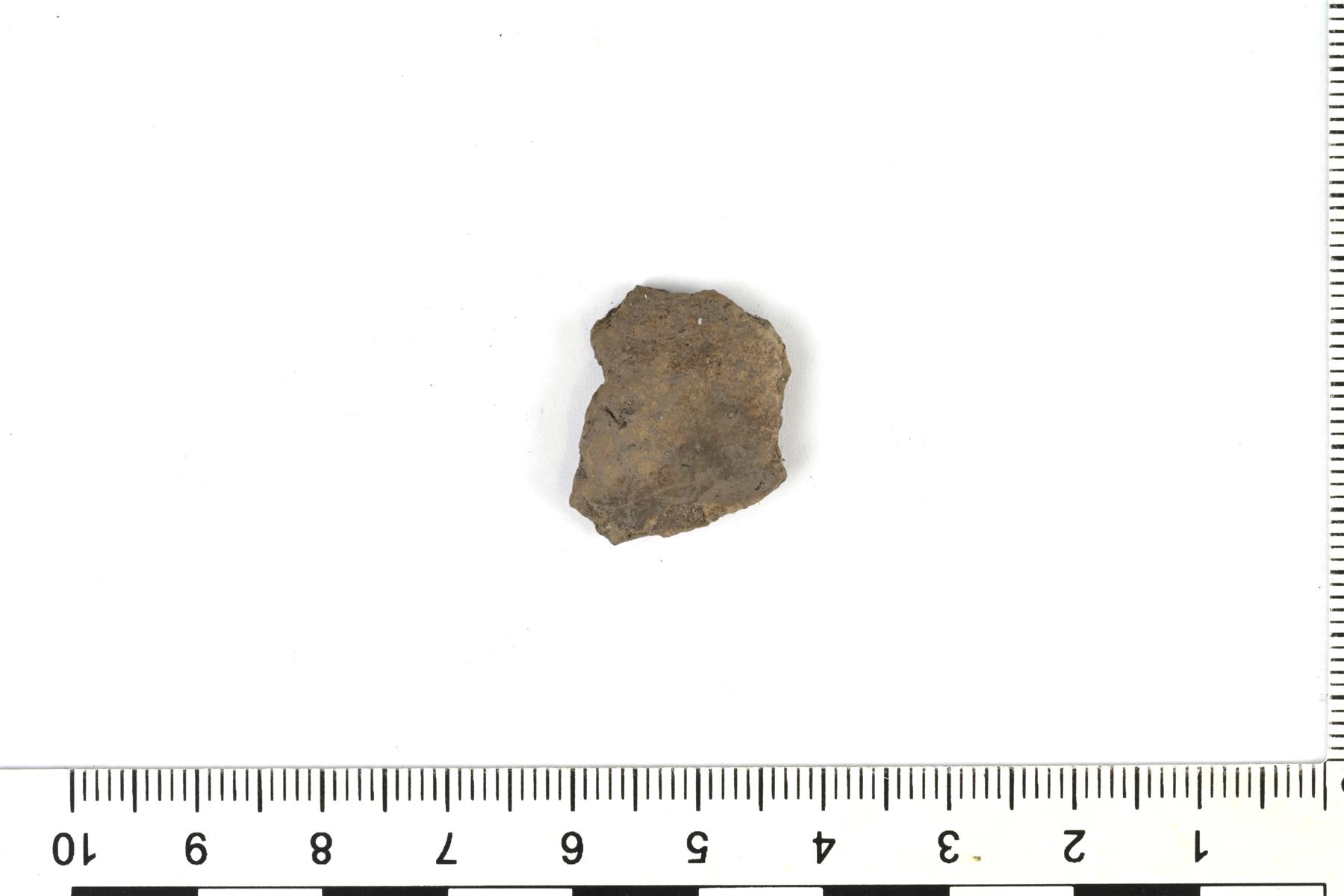 | Sileäpintaisen saviastian kylkipala. Sisäpinta ei ole säilynyt. | |