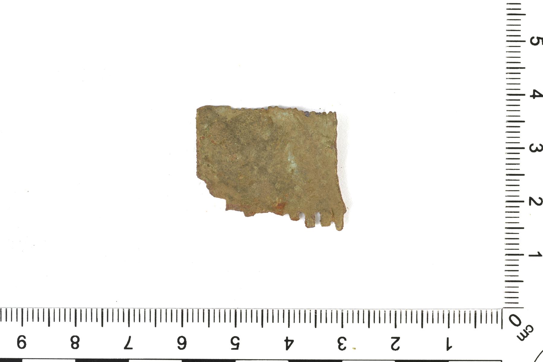 | Kuparipellin pala, hammastettu reuna. | |