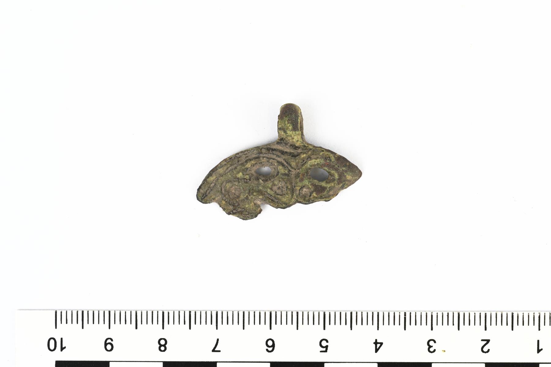 | Puhkonaisen riipuksen yläosan katkelma. Vrt. Kivikoski Abb. 781. | |