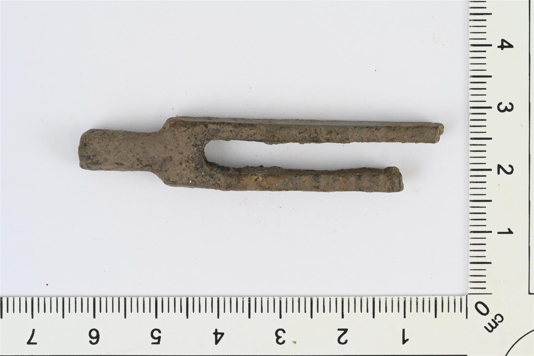 | Putkilukon avaimen katkelma. Ns. kirnunmännänmuotoisesta avaimesta, jossa lehti sijainnut varren kaksihaaraisen alaosan päässä. Katkelma varren kaksihaaraisesta osasta, varren yläosa ja lehti puuttuvat. Toiselta puolelta poikkiviivainen. | |