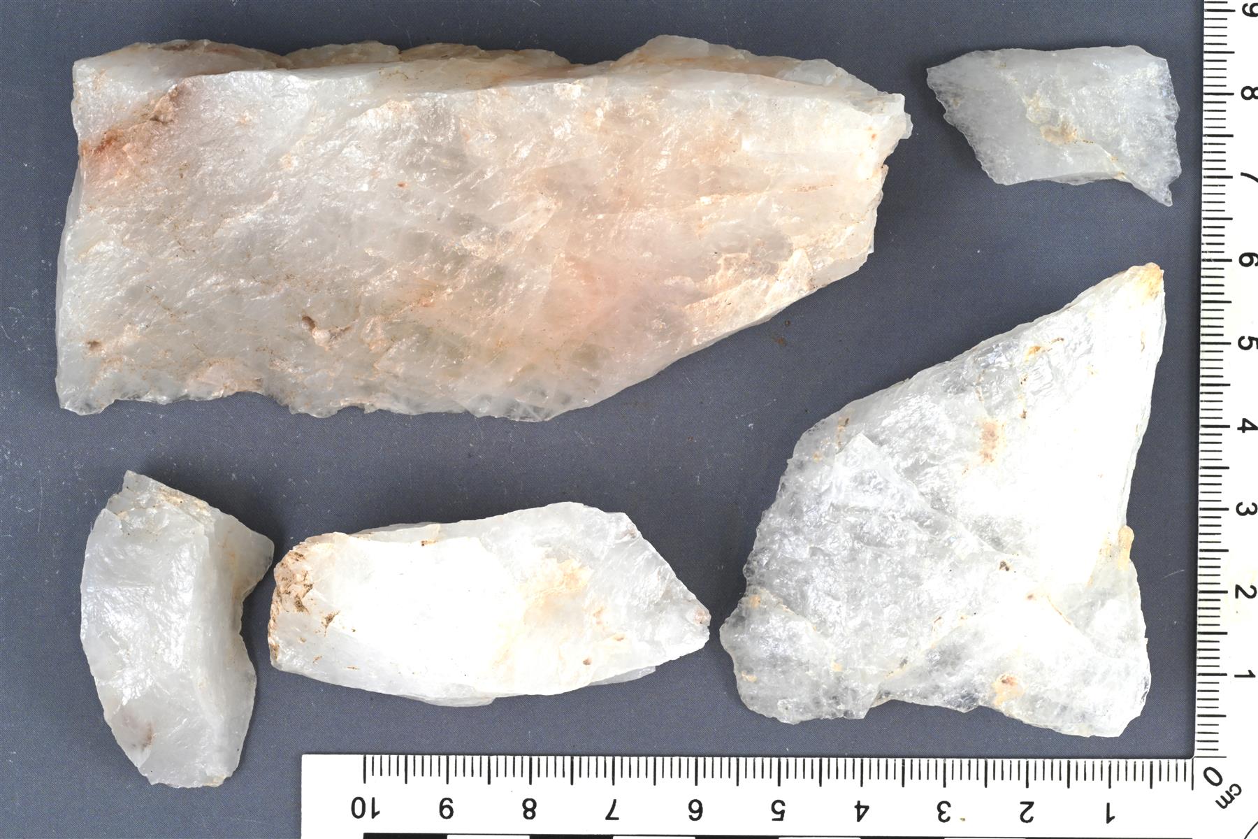 | Lajitelma kvartsi-iskoksia. | |