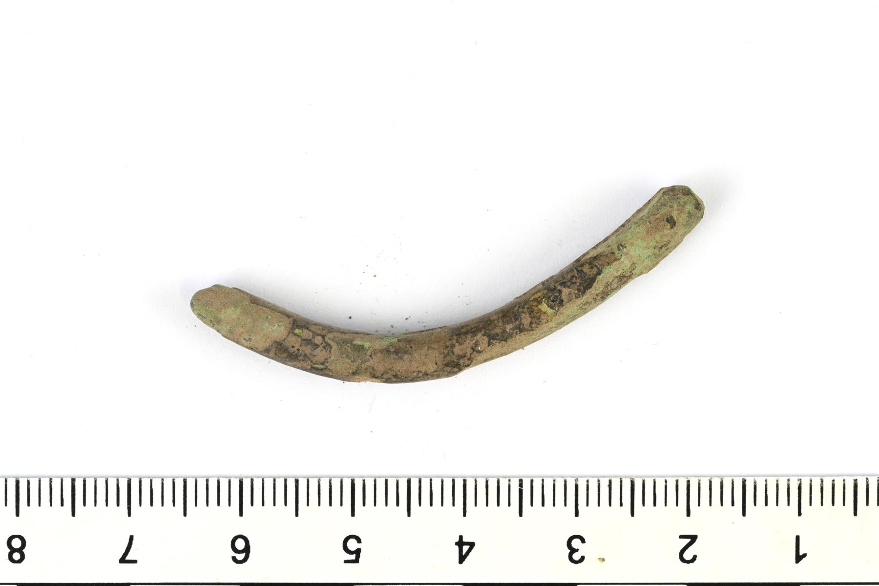| Mahdollinen tasaleveän rannerenkaan katkelma. Poikkileikkaukseltaan ovaali. Ei koristelua. | |