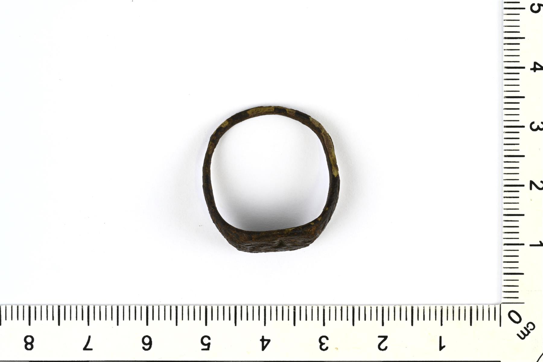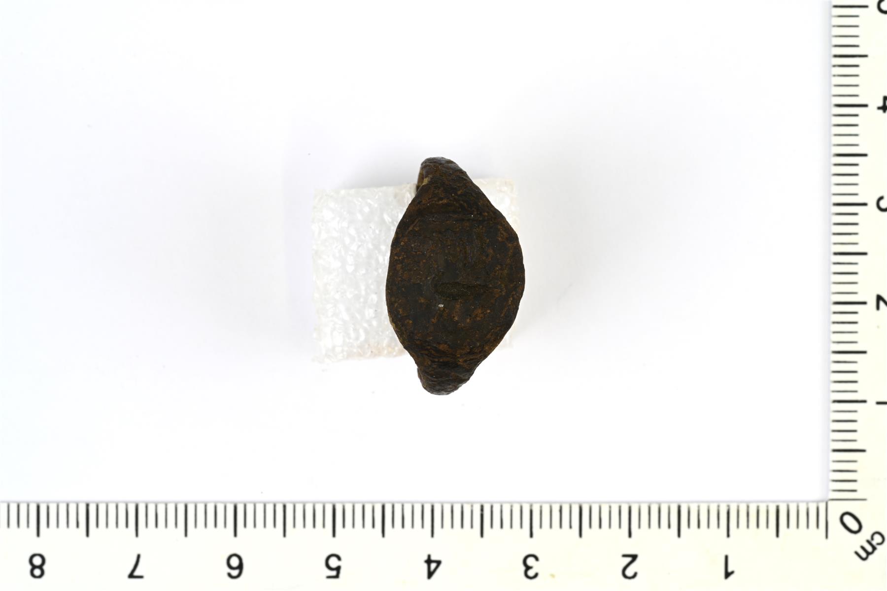 | Kokonaisena säilynyt Sarvas-sormus. Kannassa on epäselvä eläinhahmo (lintu?). | |