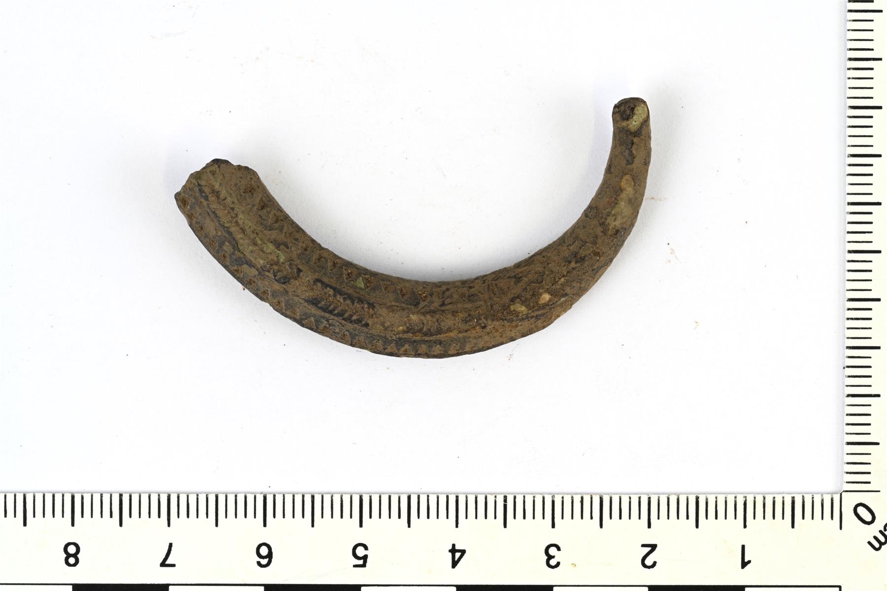 | Hevosenkenkäsoljen kehän katkelma. Koristeluna kolmioleimoja. Poikkileikkaukseltaan vinoneliö. | |