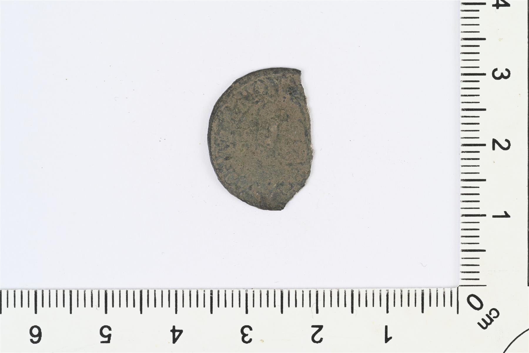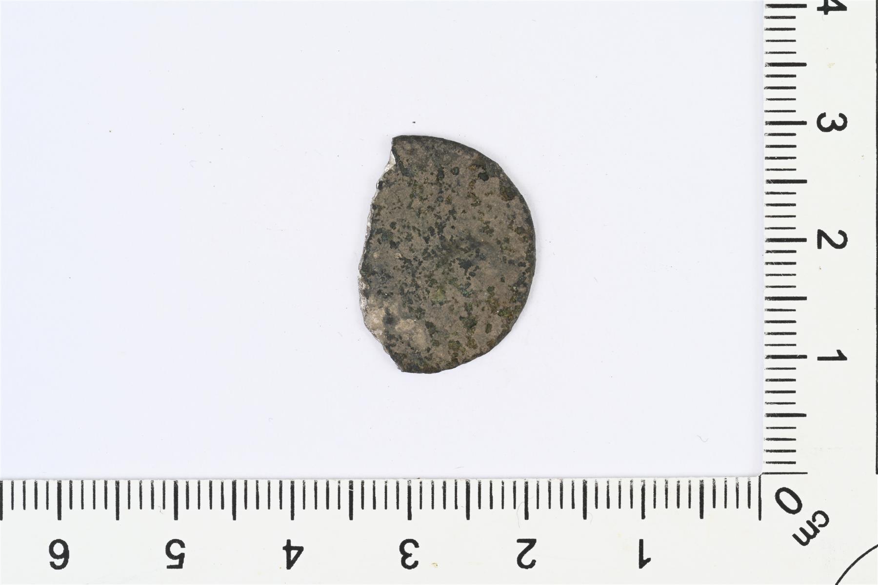 | Ruotsalaisen hopearahan katkelma, noin 1600-1700-luku. Tarkempi tunnistaminen ei ole mahdollista ilman rahan puhdistamista. | |