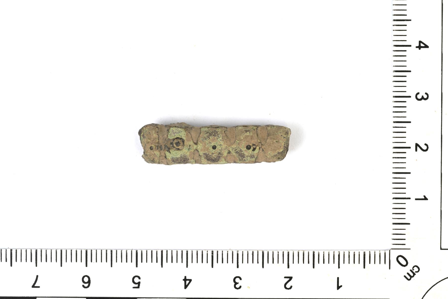 | Viisilohkoinen sarjahelmi. Fasetoitu ja koristeltu häränsilmäleimoilla. | |