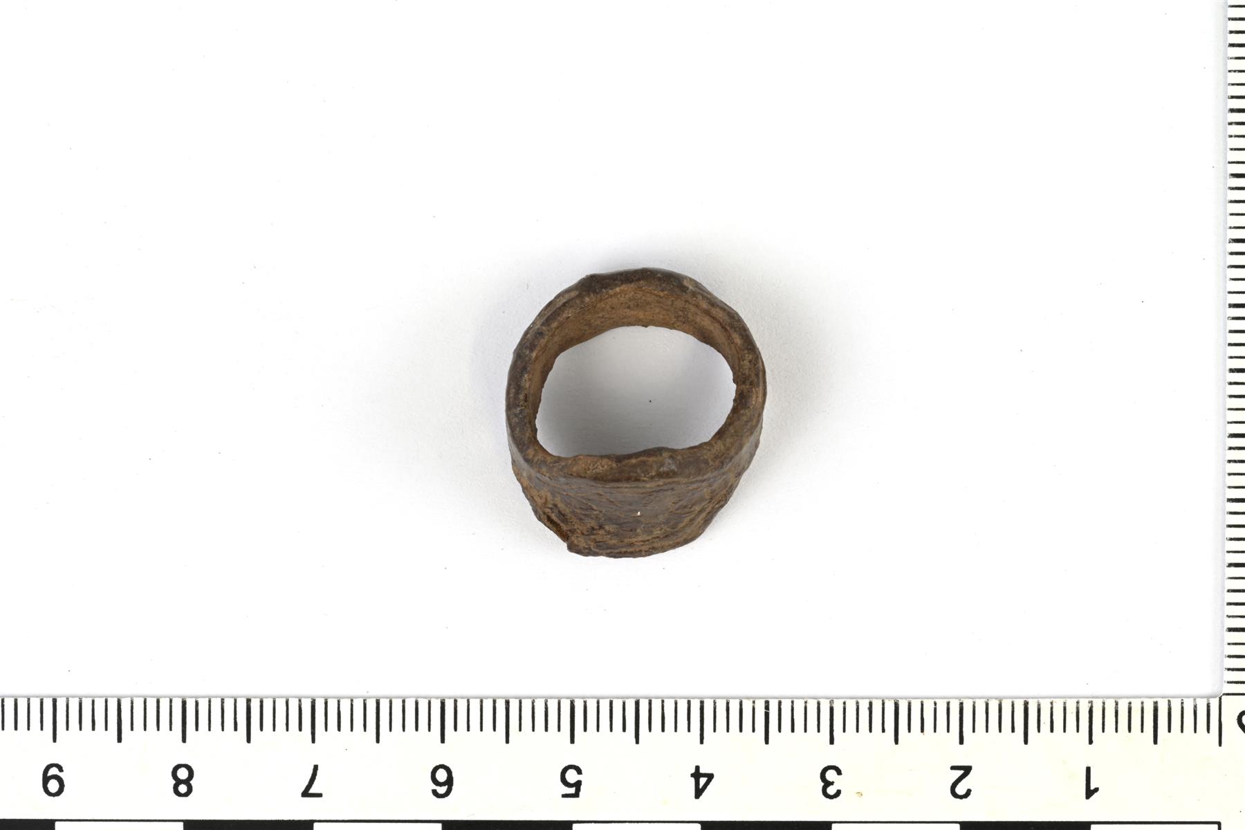 | Talonpoikainen sormus. Kilvessä on viivaornamentiikkaa. | |