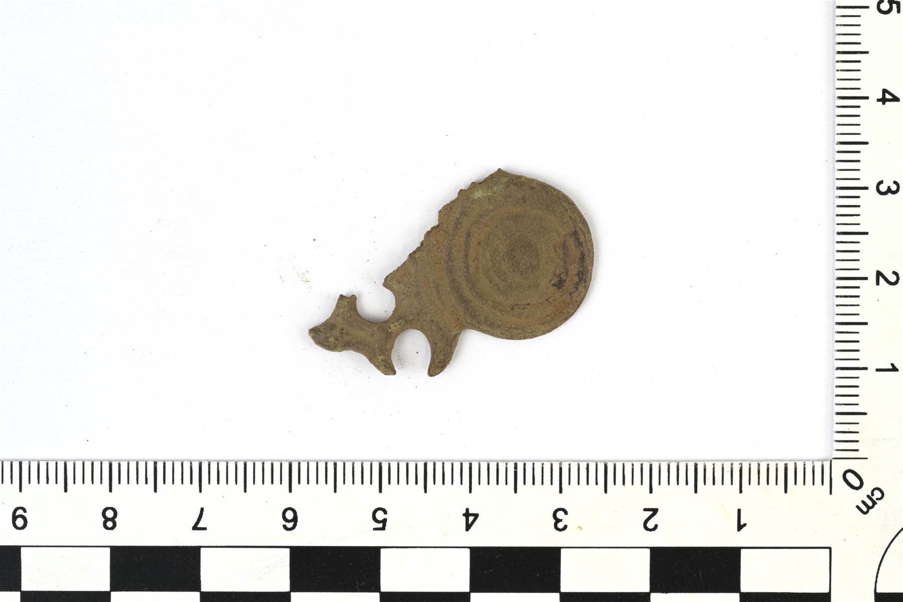 | Ketjunkantajan katkelma. Pyöreässä korvakkeessa on koristeluna sisäkkäisiä kehiä. | |