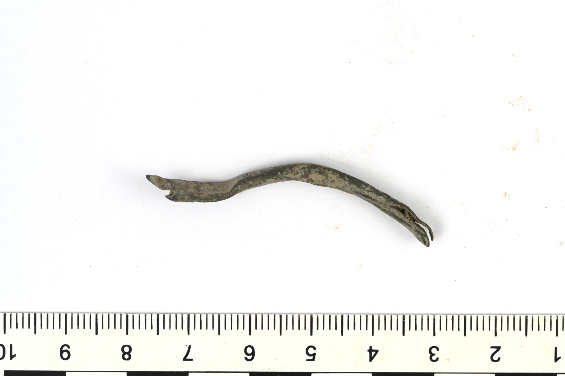| Rullatun kupariseospellin katkelma. Mahdollisesti vaakakupin tai muun astian reunasta. | |