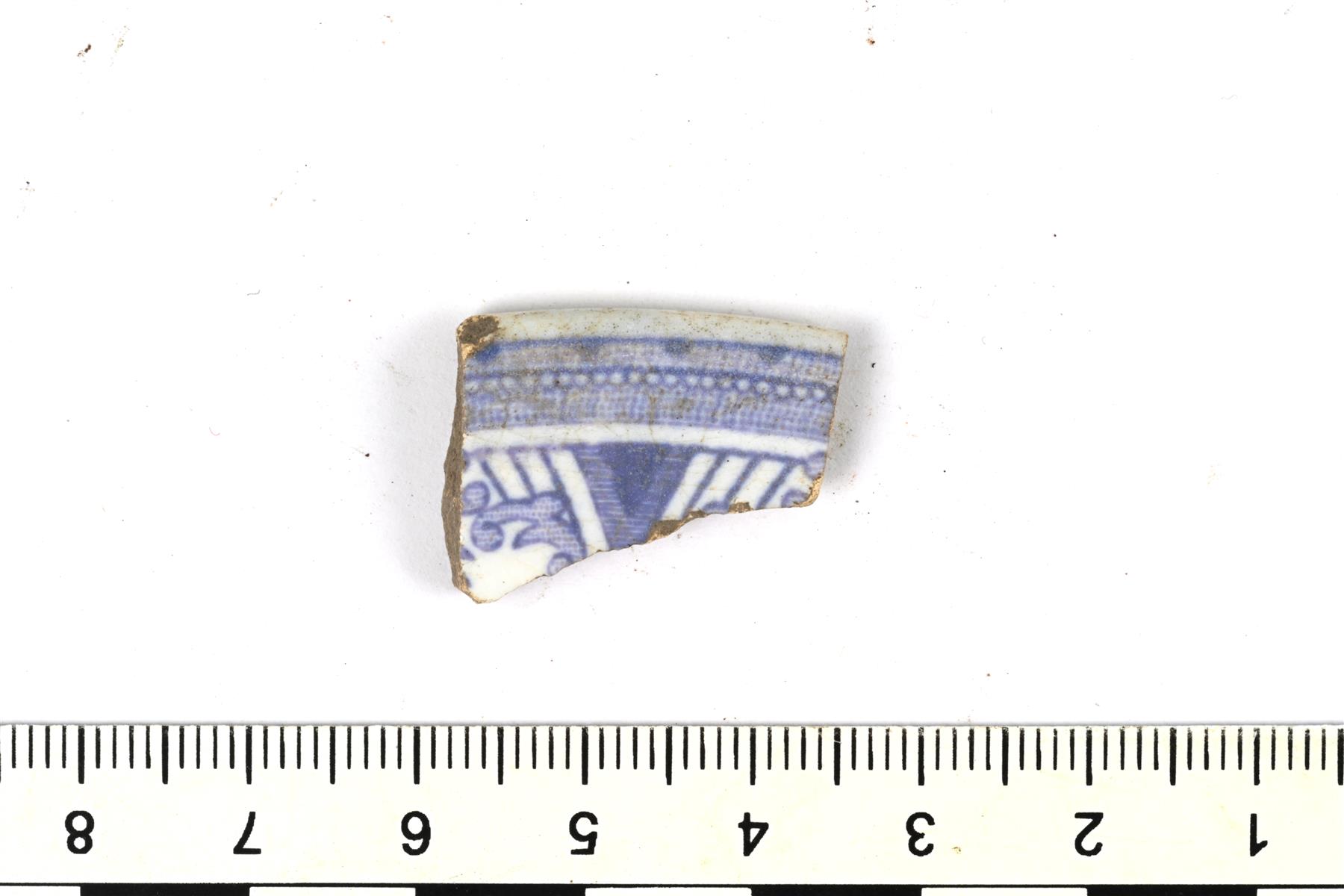 | Posliiniastian fragmentti. Koristeluna sinistä kuviointia. | |