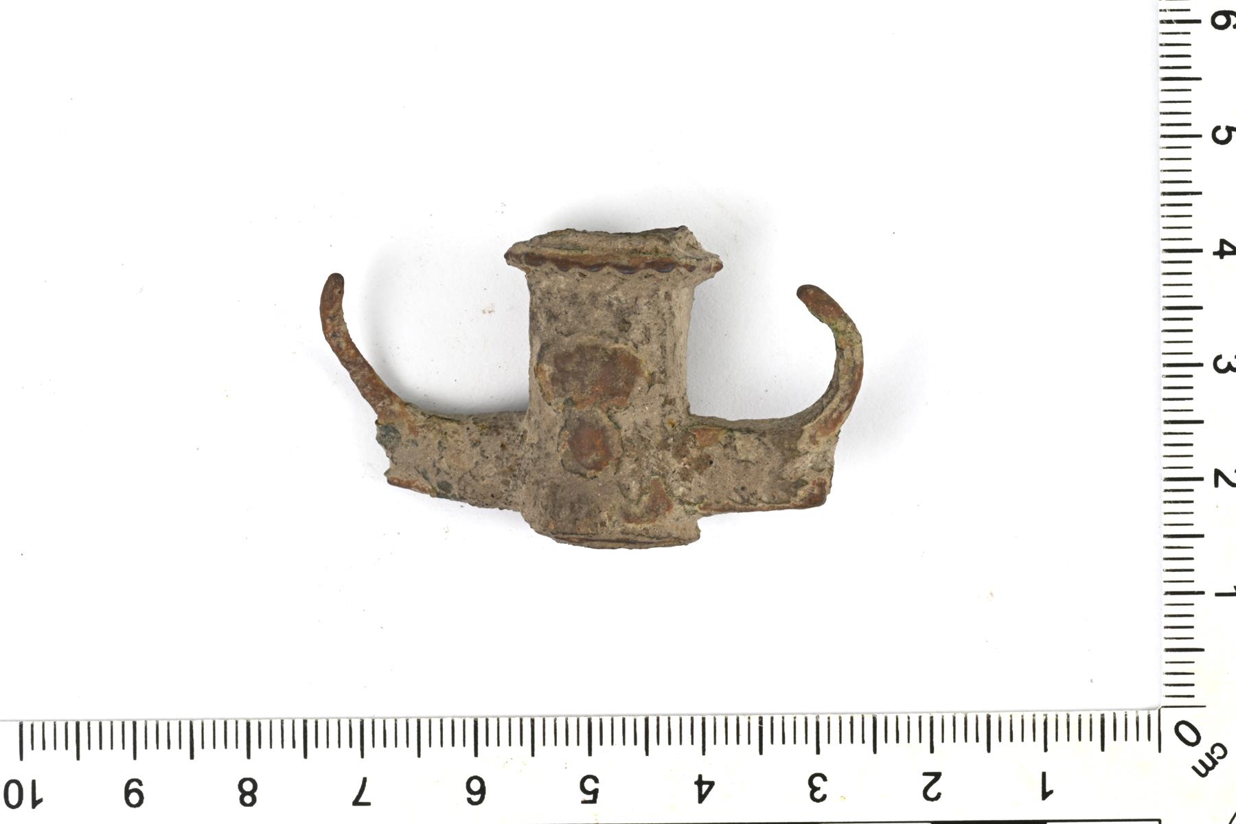 | Miekan tai todennäköisemmin tikarin väistin. Pahoin kulunut. | |