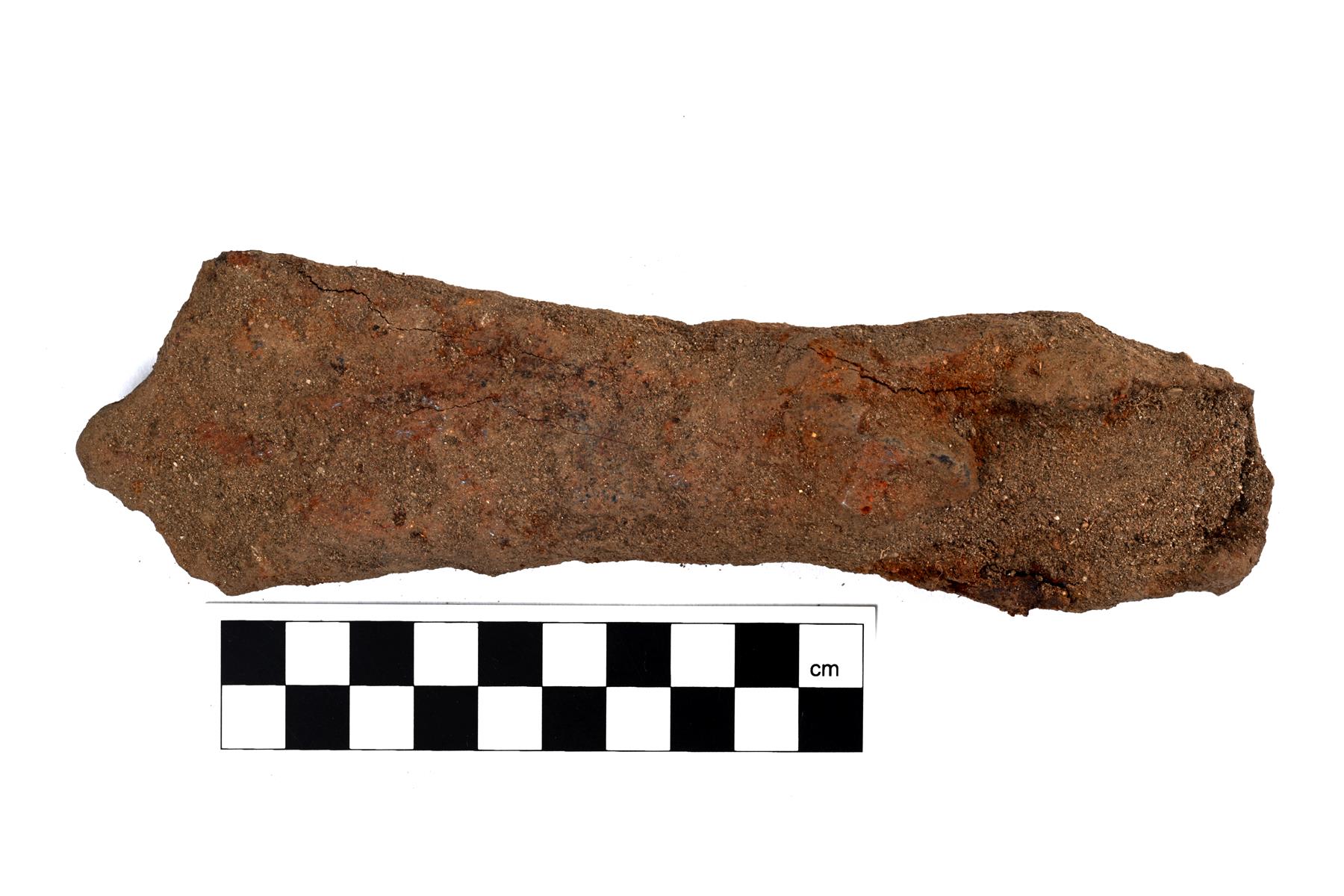 | Pitkäteräinen putkikirves. Putki ja teränsuu ovat hajonneet. Putken toisella sivulla on pieni levennys, joka on mahdollisesti kirveen korvake. Vrt. Salo Taf. 45 | |