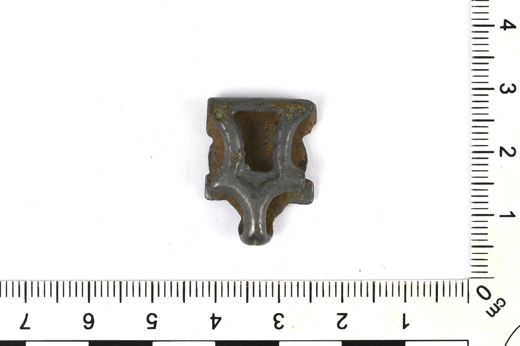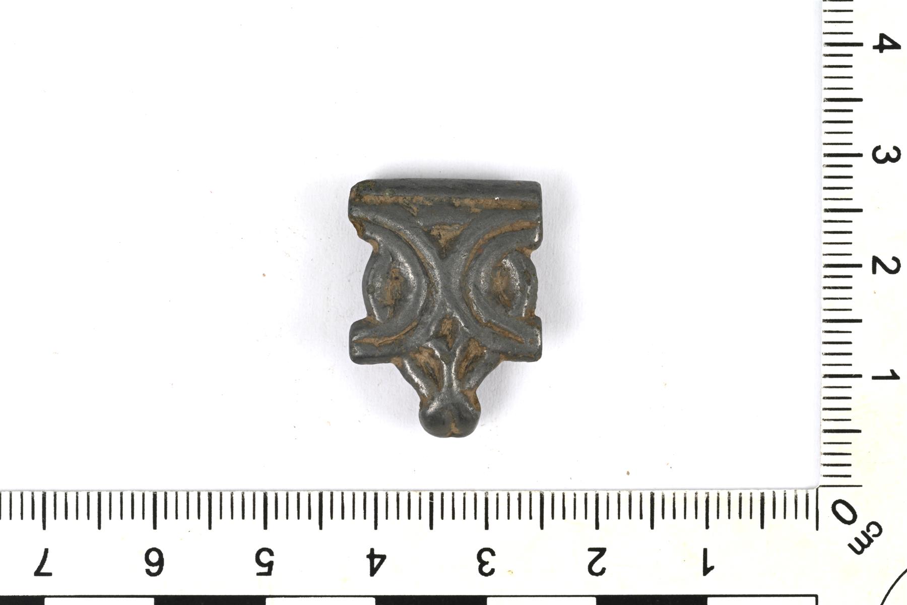 | Pieni kasettihela. Etupuolella on koristeluna ympyrä- ja puoliympyräkoristelua. Vrt. Kivikoski Abb. 935-936. | |