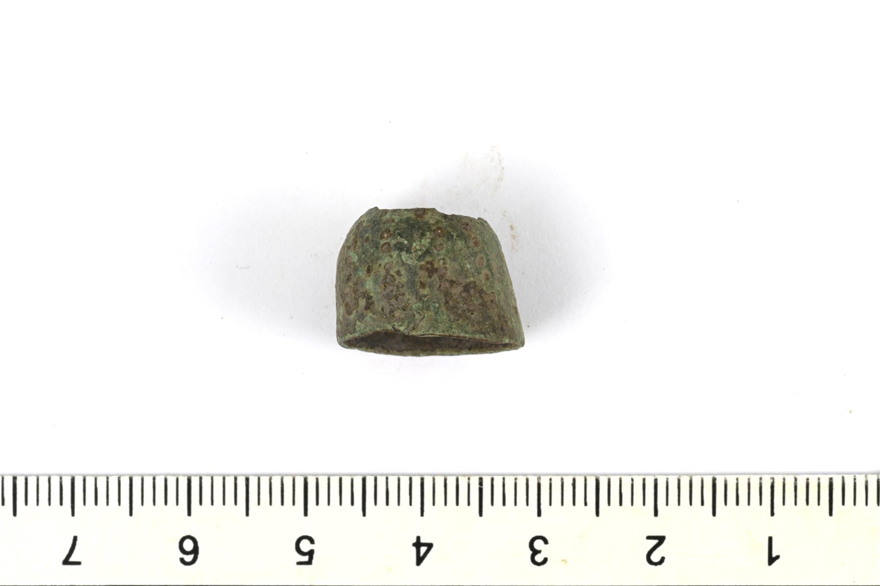 | Katkaistun kartion muotoisen kupariseosputken pala. | |