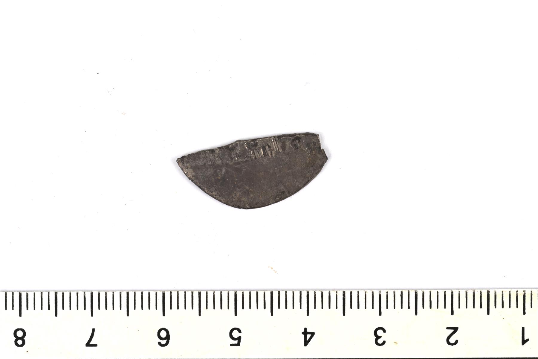 | Dirhemin katkelma. Paksu aihio, valitettavasti hyvin kulunut, mutta joku harvinaisempi dynastia 900-1000-l. | |