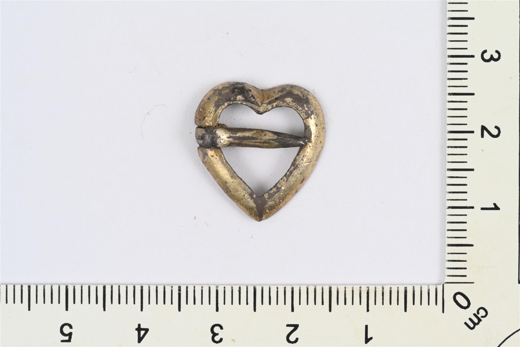 | Pieni sydänsolki. Kullattua hopeaa. Kehässä kavennettu kohta, johon neulan tyvi kierretty. | |