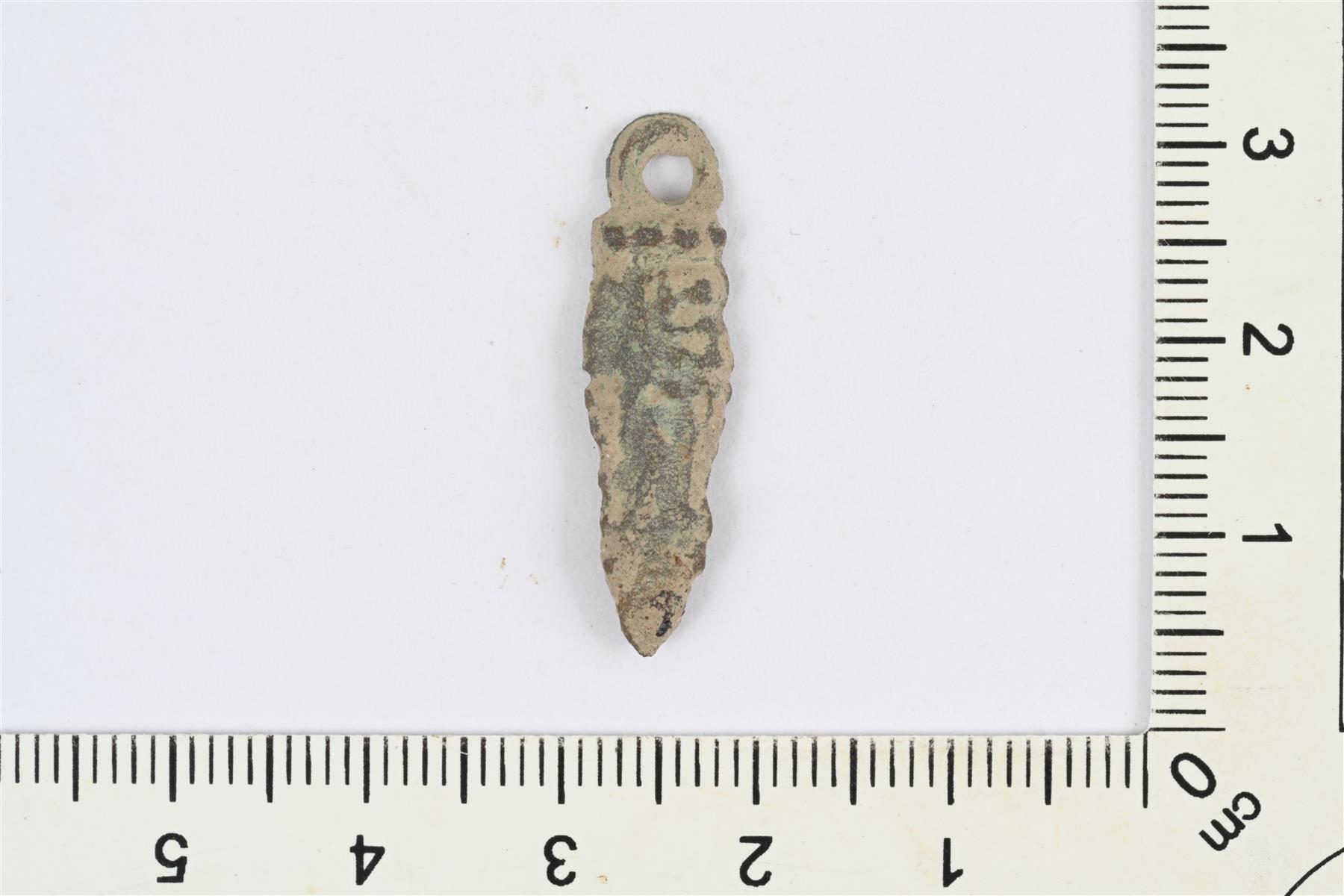 | Pieni kirjansolki, tyyppiä 2. Toisessa päässä lenkki, etupuolen levy reliefikoristeinen, taustapuolen levy kapeampi ja koristelematon. | |