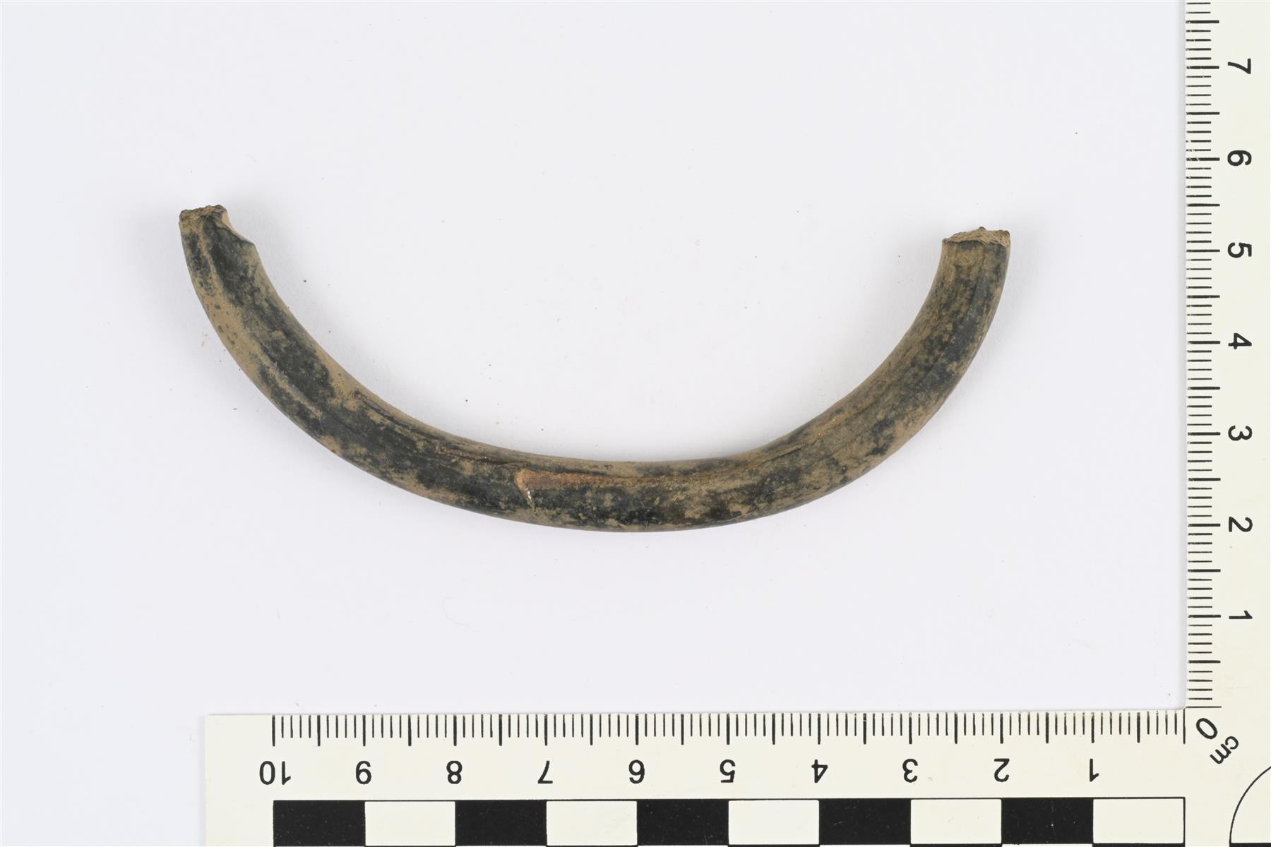 | Kaarevaksi taivutettu kupariseostangon katkelma. Poikkileikkaus pyöreä. | |