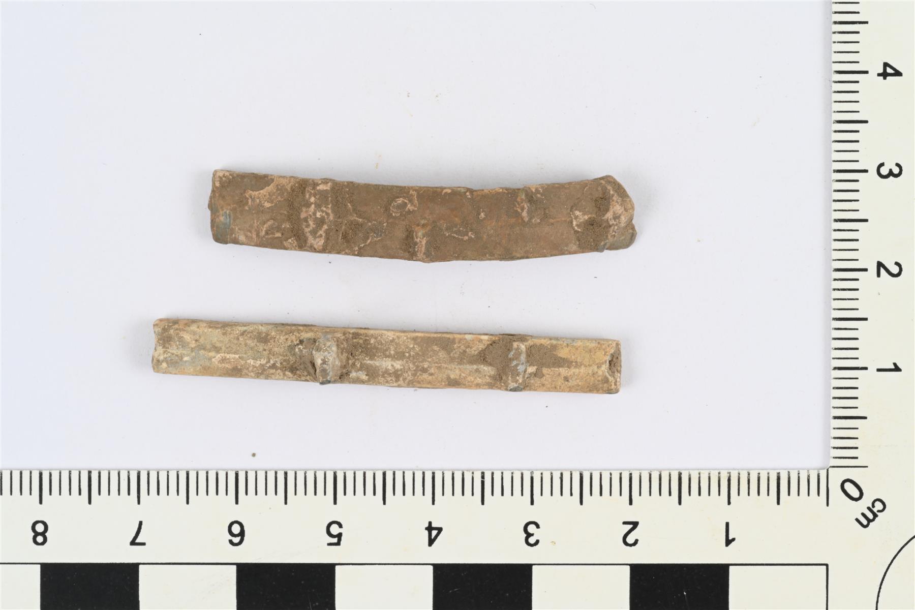 | Litteähköjen lyijyvartaiden katkelmia. Toisella pinnalla tappeja ja kohoumia. | |