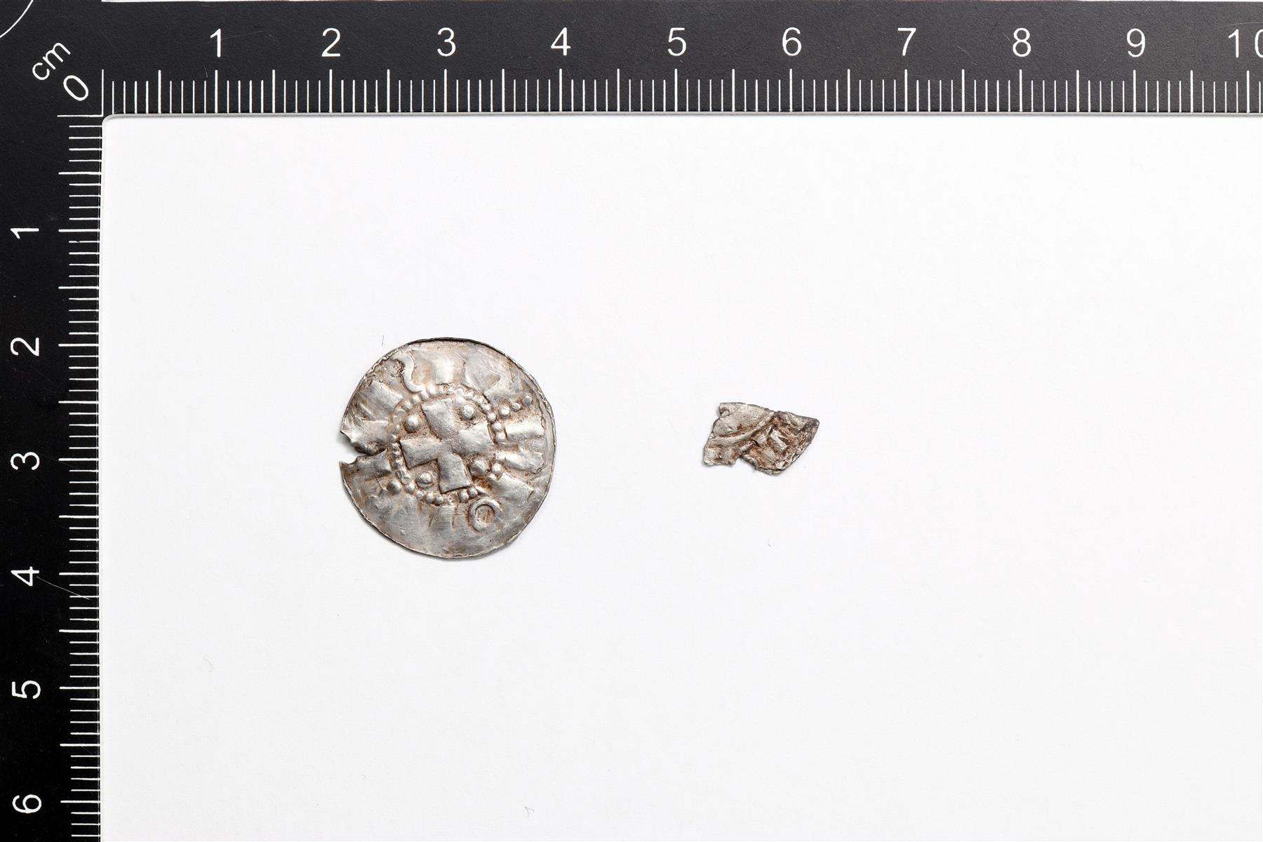 | Penninki, Friisinmaa (Emden?), anglosaksisen penningin katkelma ja kolme pientä katkelmaa. | |
