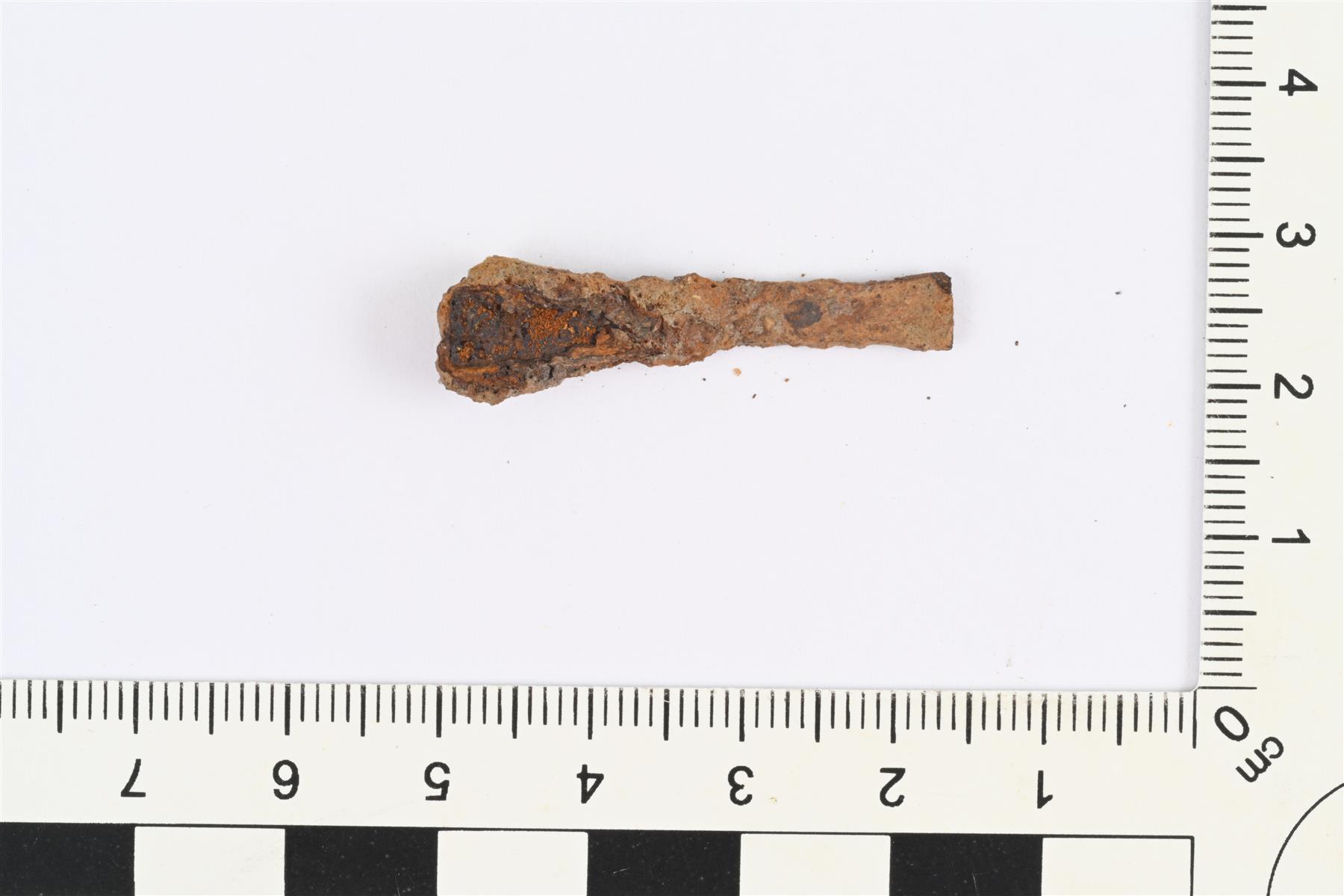 | Litteän rautavartaan katkelma, levenee hieman toiseen päähän. | |