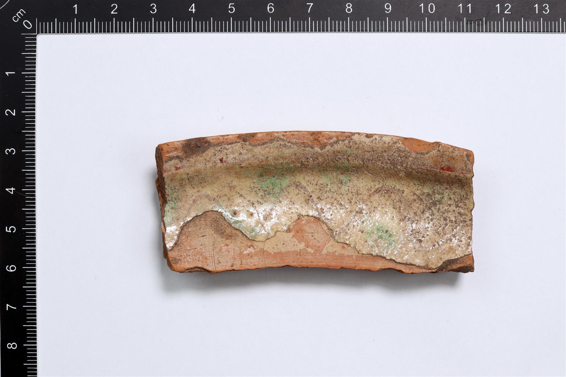 | Astian reunapala, jonka sisäpinnalla on valkoista saviliettä, vihertävää lyijylasitetta ja sgrafittokoristelua. | |