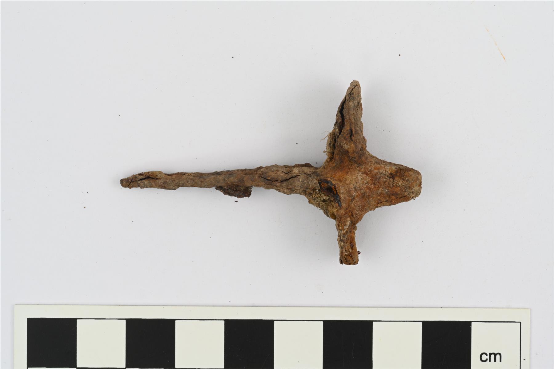 | Yksipiikkinen hevosen viskari. Teräväksi suippeneva naulamainen varsi, jonka toisessa päässä pieni kahdeksikon muotoinen levy ja sen toisella pinnalla ulkoneva jäänasta. | |