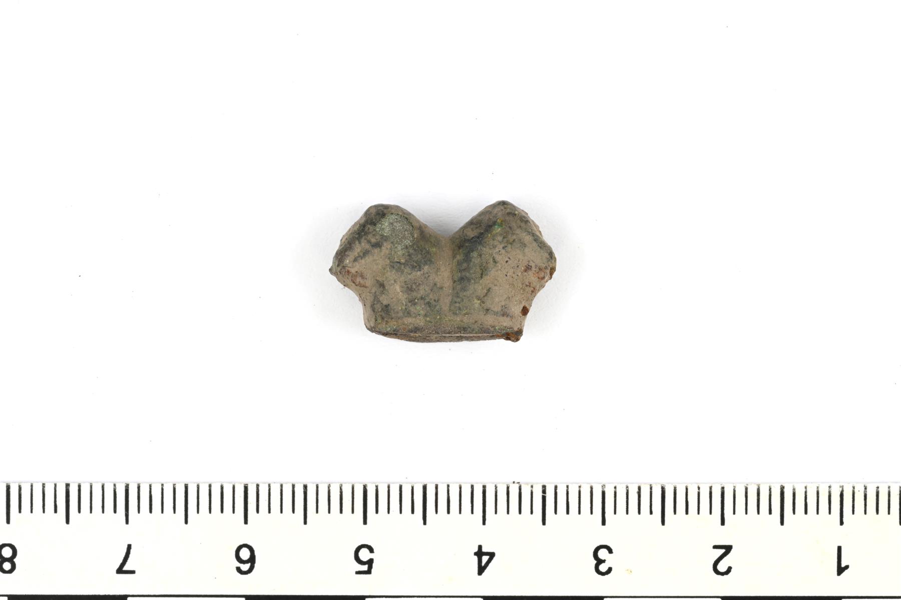 | Kaksihaarainen pöytäveitsen päätehela. | |