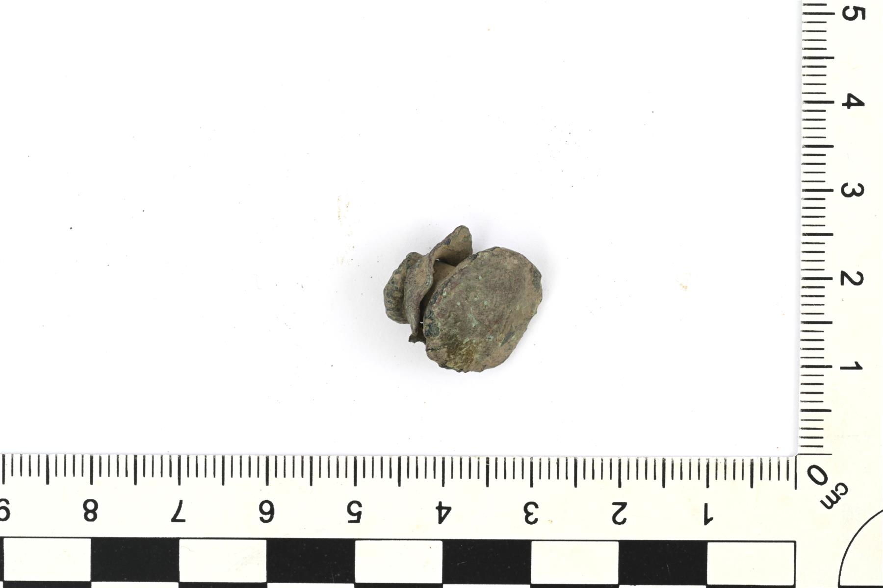 | Padan tai kattilan niitti. Säilyneenä myös pieni pala astian kyljestä. | |