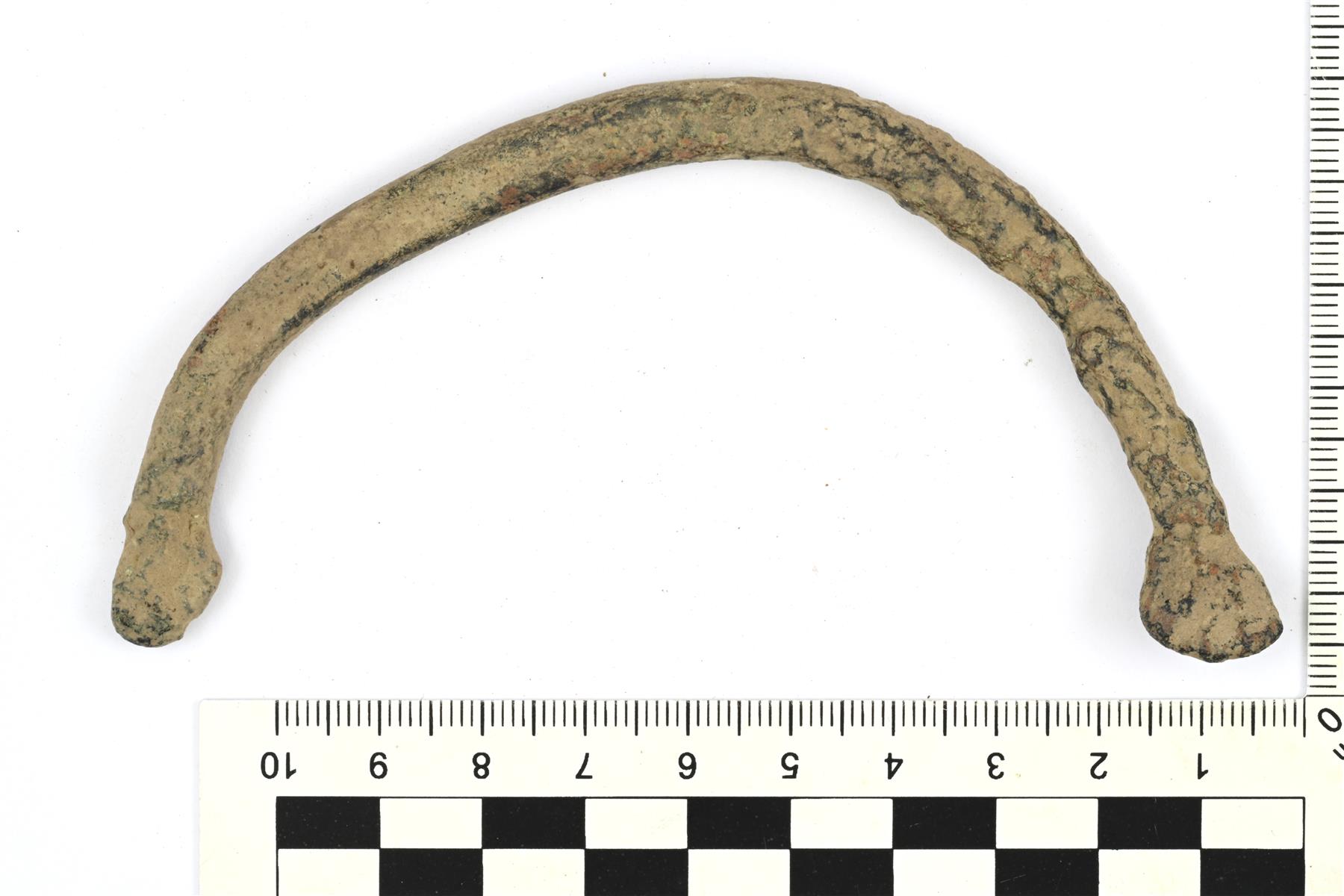 | Kaarevan kupariseosvartaan katkelma. Päädyt ovat osittain sulaneet. | |