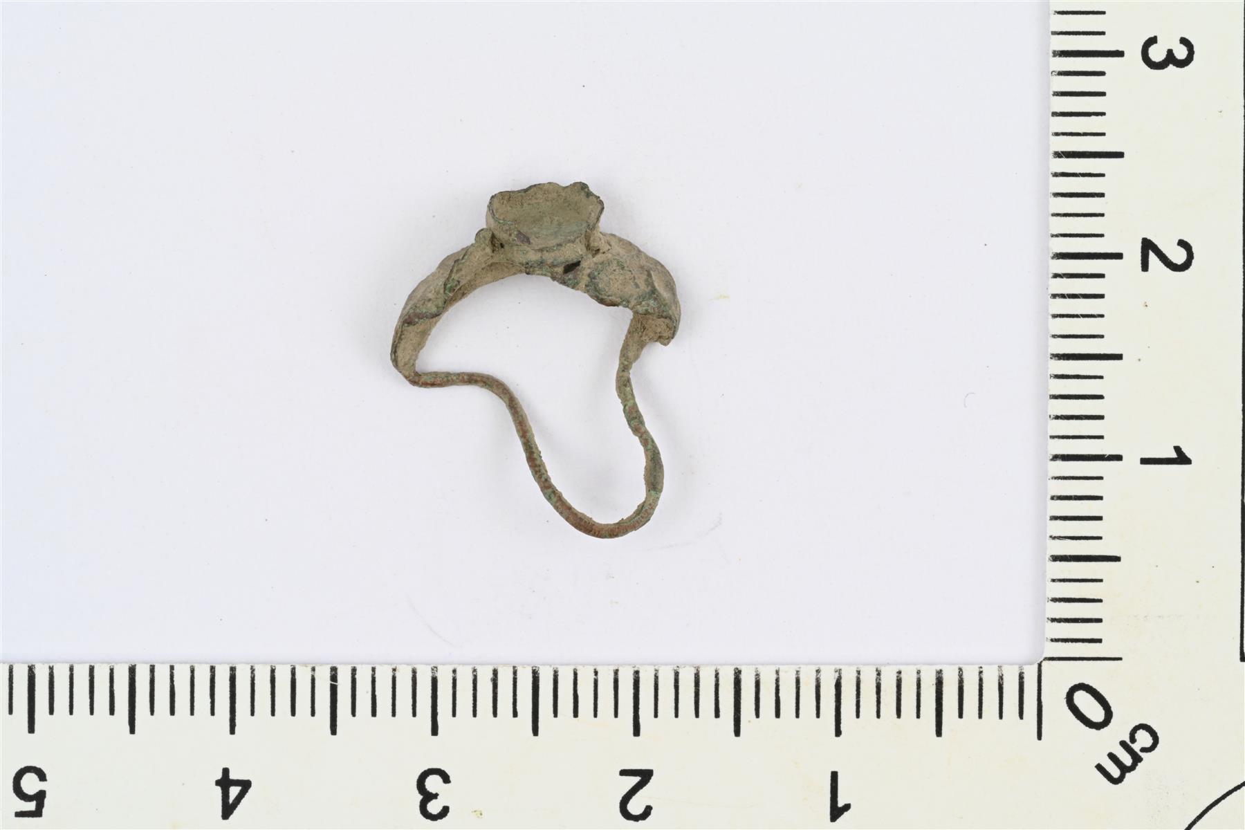 | Sormus, jonka muotoillussa etuosassa paikka kivelle. Vääntynyt. | |