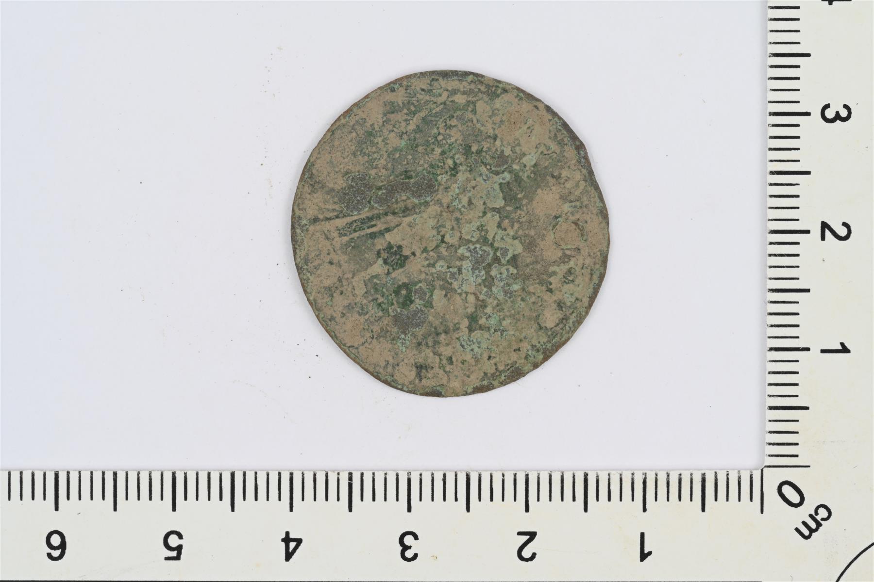 | Mahdollinen laskuraha. Tunnistamaton pahasti hapettunut ohut kuparinen rahake. | |