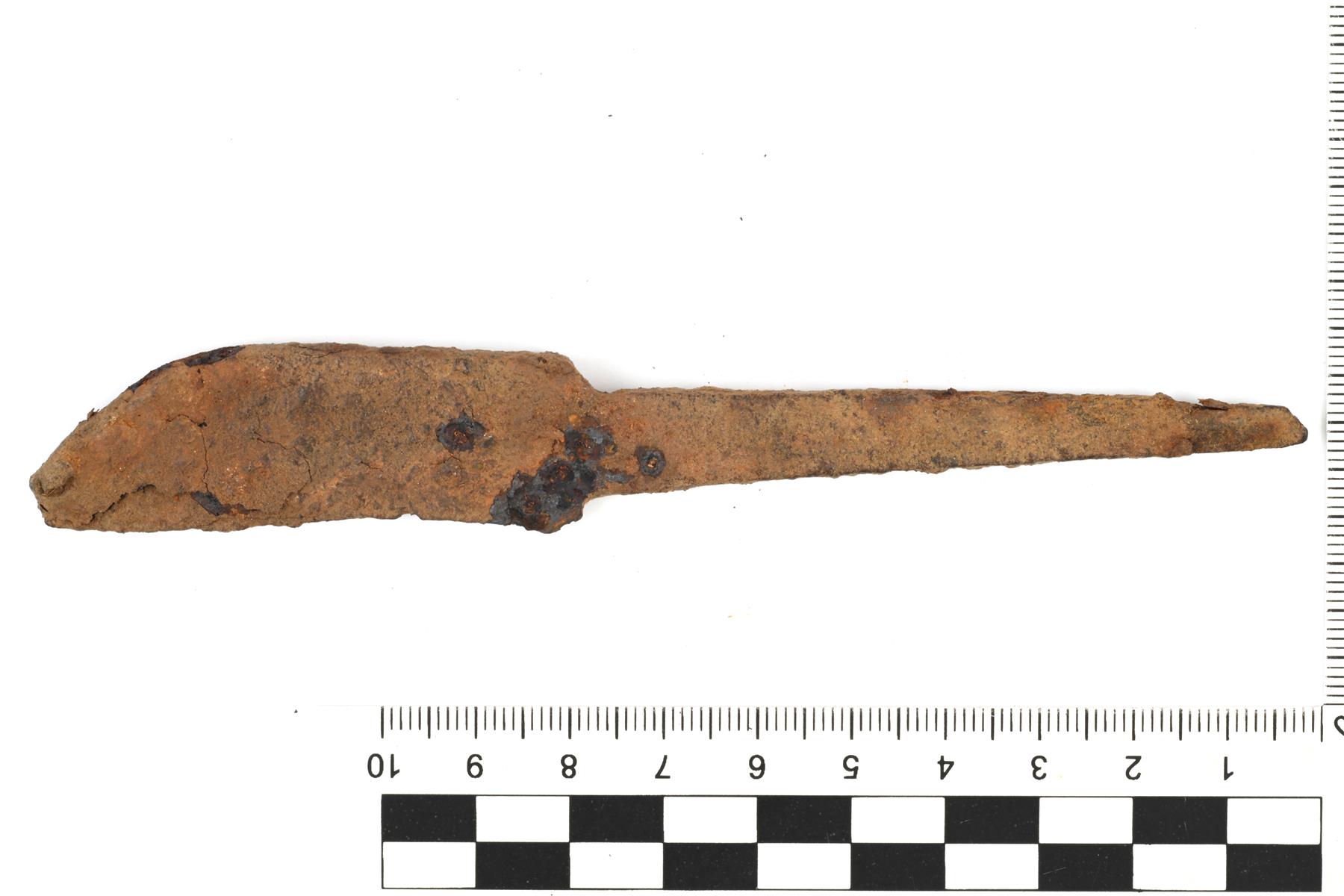 | Taitettuhamarainen veitsi. Taite on lähellä kärkeä. Teränsuu on kulunut. Terä on poikkileikkaukseltaan kolmio. | |