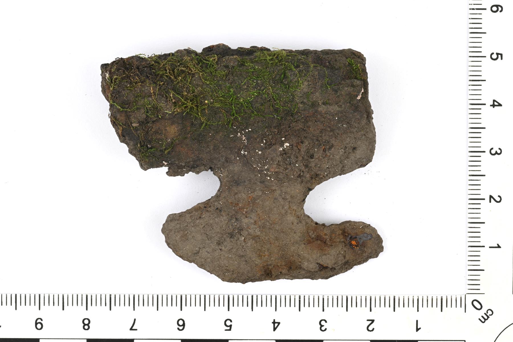 | Lyhyt rautaputki, jonka sivulla on pieni ja kaareva terä. Luultavasti hakokirves. | |