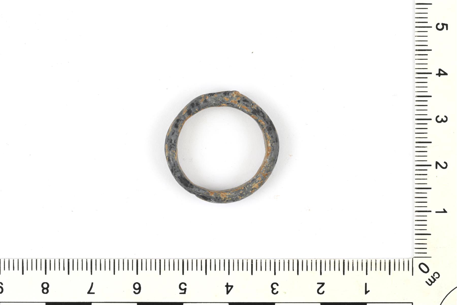 | Tasaleveä umpisormus. Etupuolella on pieni levennys, johon on kaiverrettu H-kirjain. Talonpoikaista käsityötä. | |