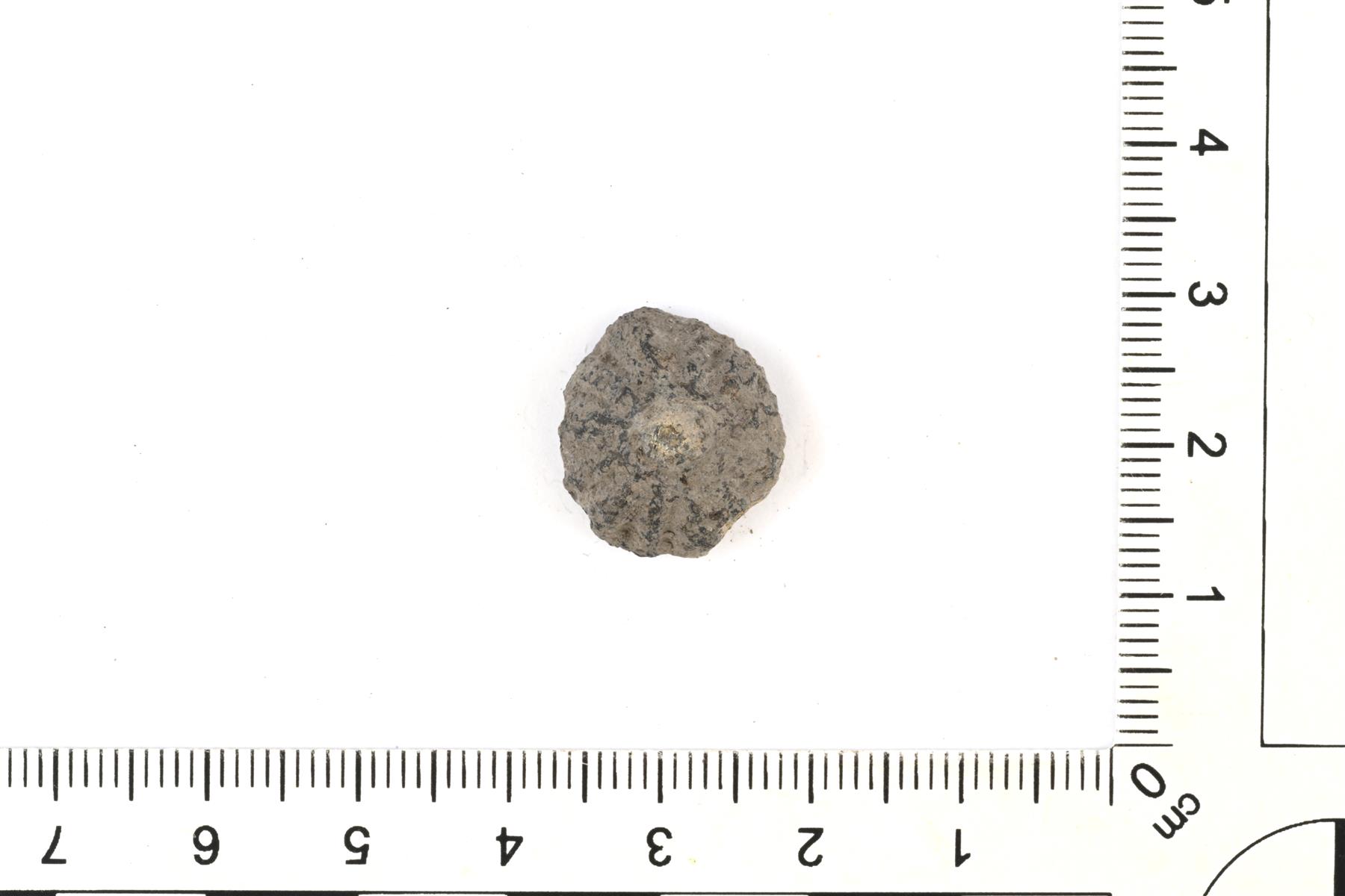 | Kukanmuotoinen nuppikatkelma, todennäköisesti hevosenkenkäsoljesta. Vrt. Salmo Abb. 46. | |