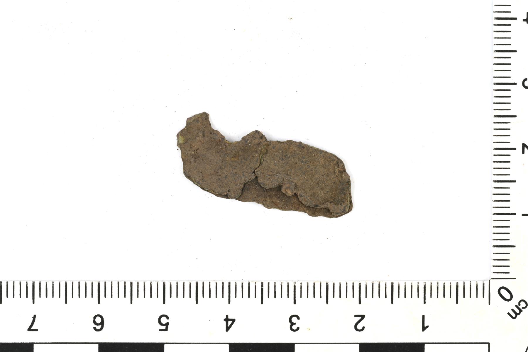 | Kupariseospellin katkelma. Taitettu kaksinkerroin. Mahdollisesti kattilasta. | |