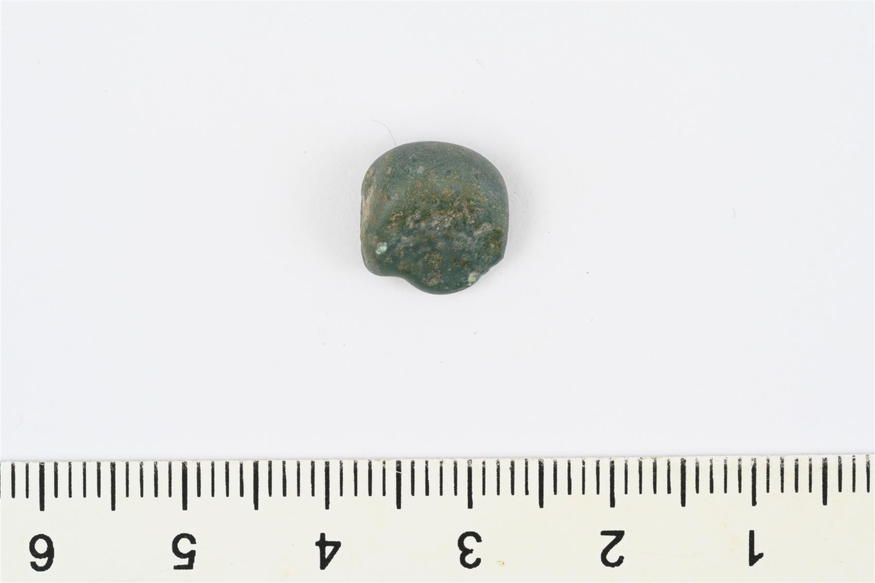 | Litteä pyöristetyn nelikulmainen kupariseospala, mahdollisesti punnus. | |