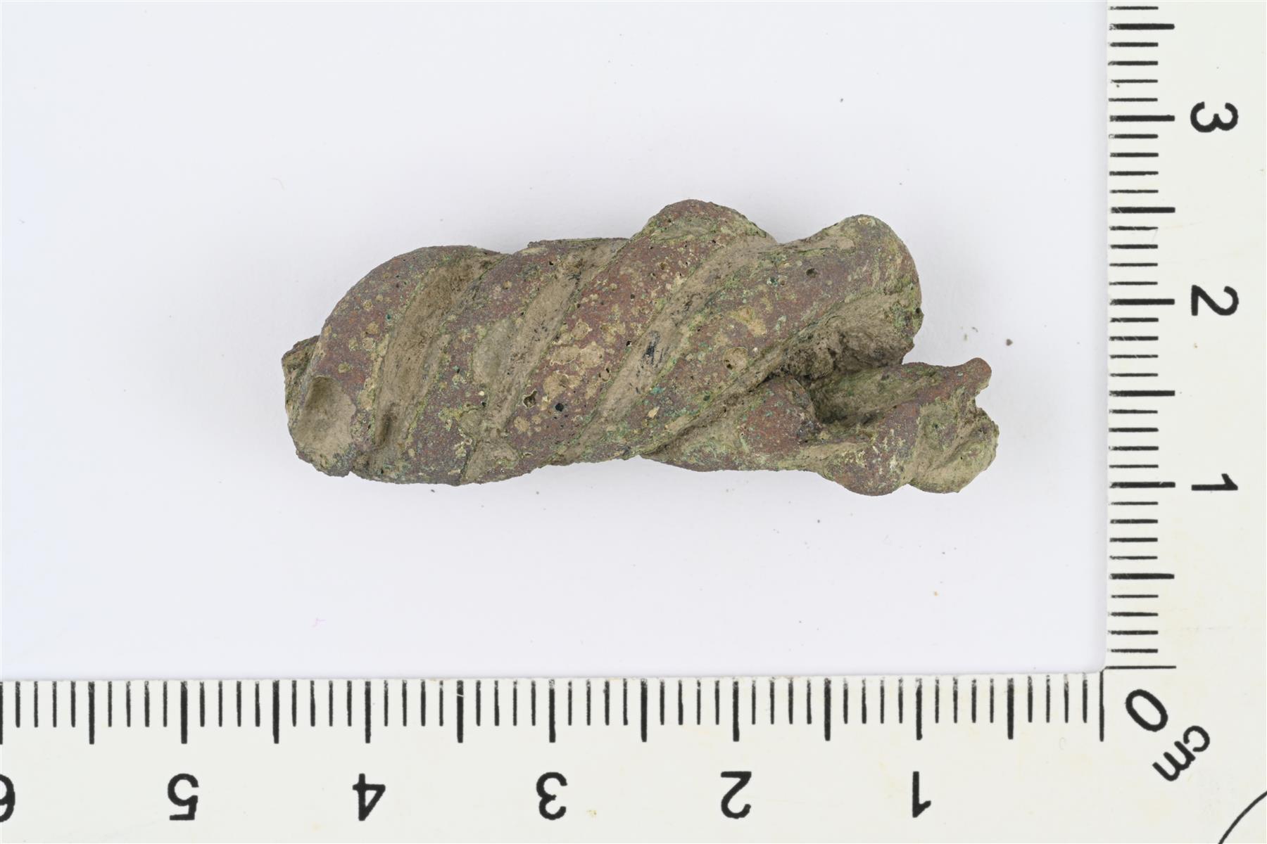 | Kolmesta vartaasta kierretyn kaularenkaan katkelma. Osittain sulanut. | |