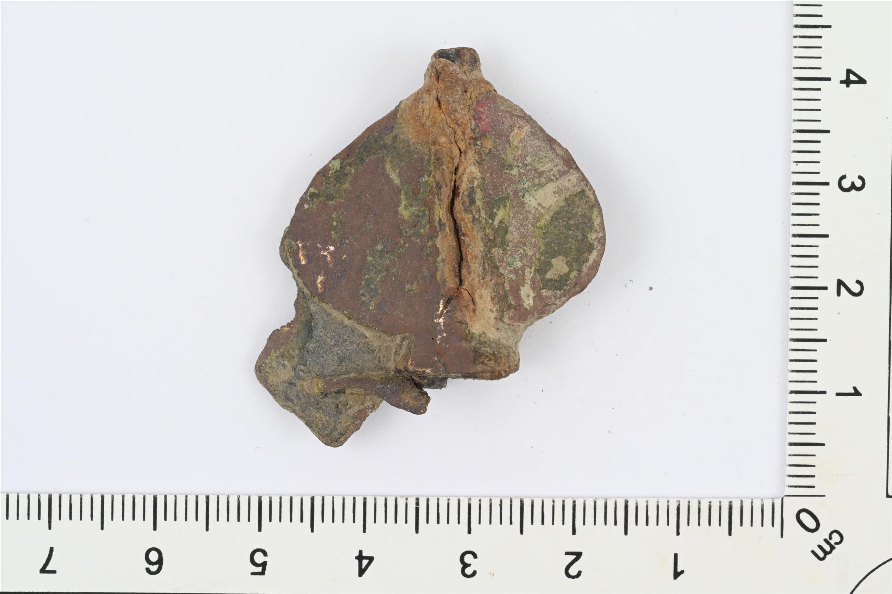 | Valmunuppisen kaarisoljen nuppi, johon sulanut kiinni osa soljen kaarta. | |