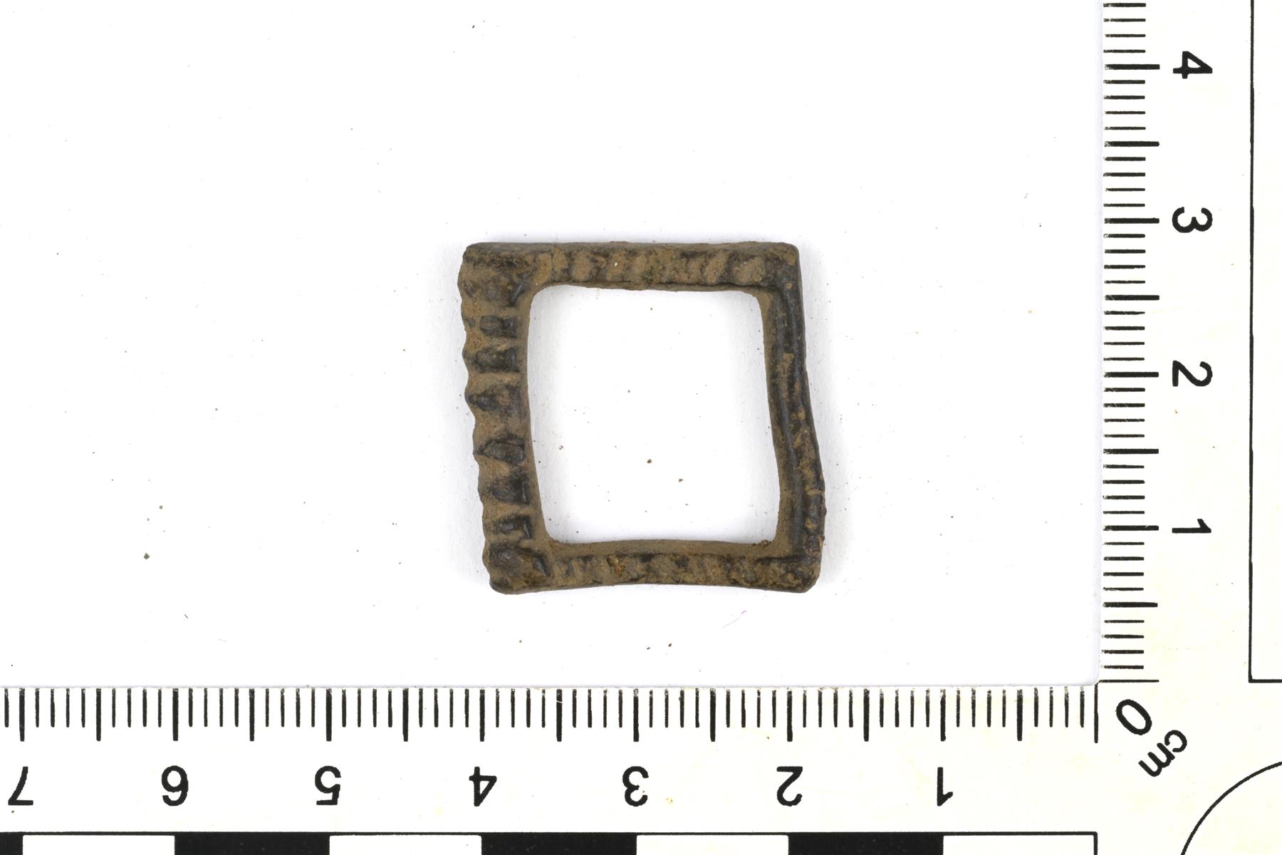| Neliömäinen hihnansolki. Neula puuttuu. | |