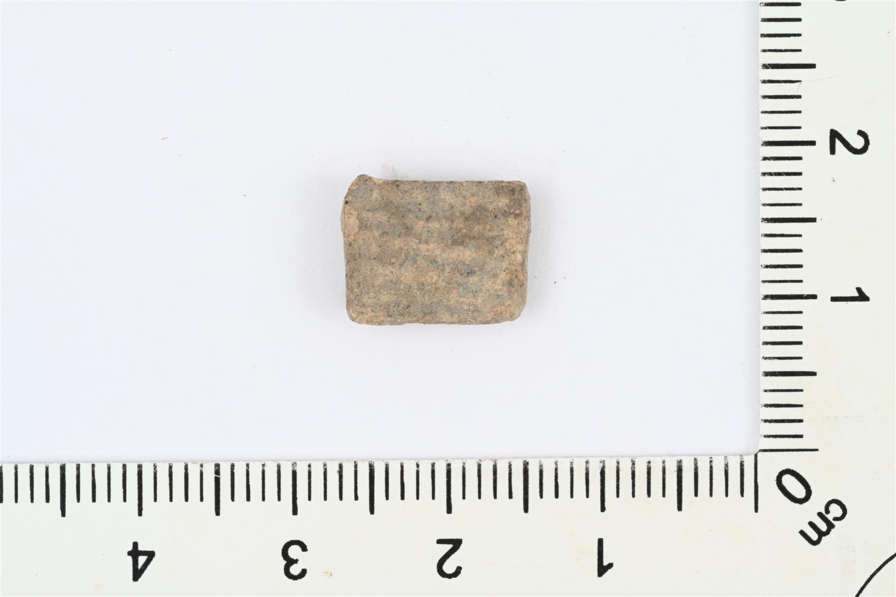 | Suorakaiteenmuotoinen litteä lyijypala. Etupuoli kupera, taustapuoli tasainen ja poikkiurainen. | |