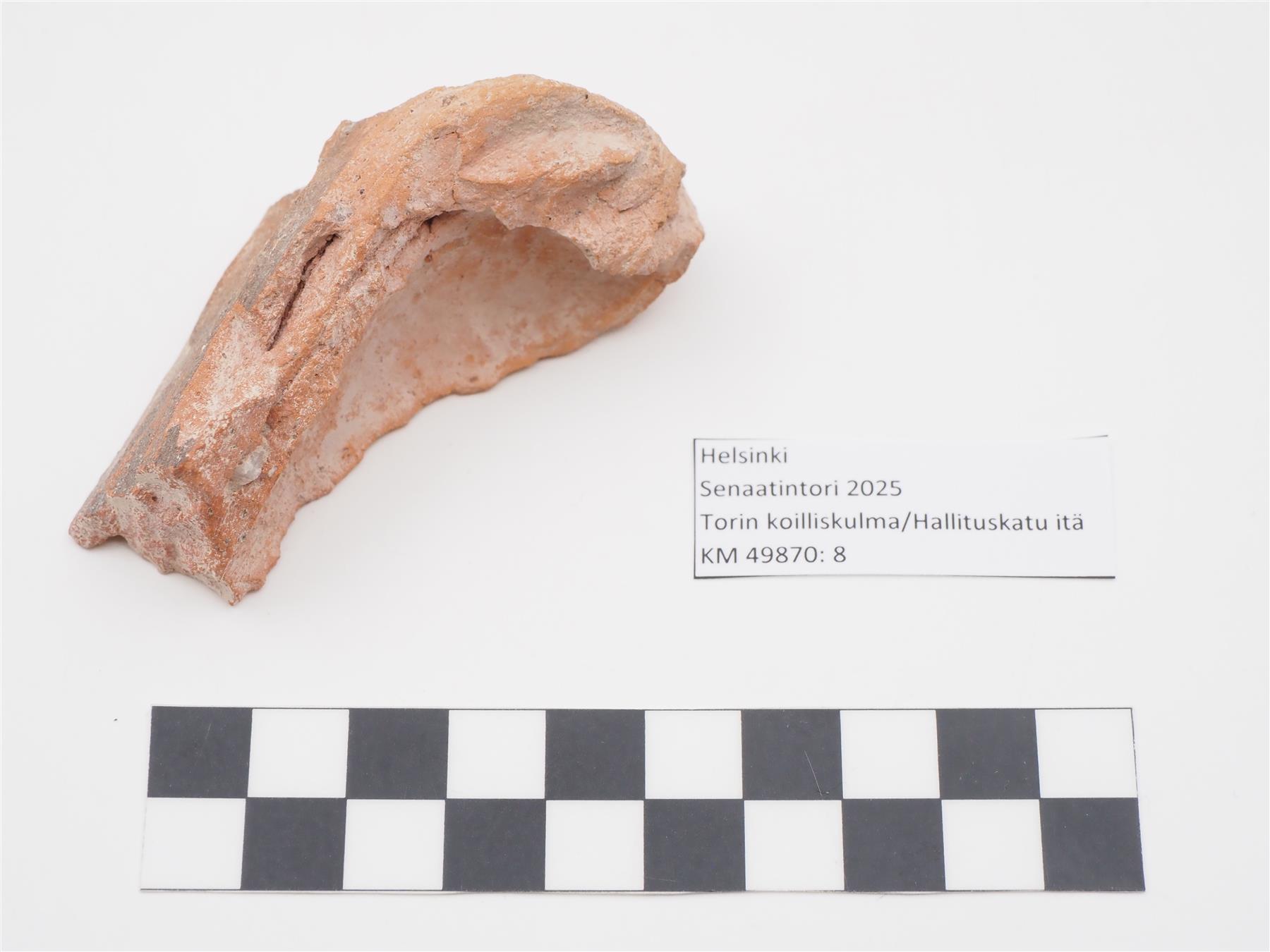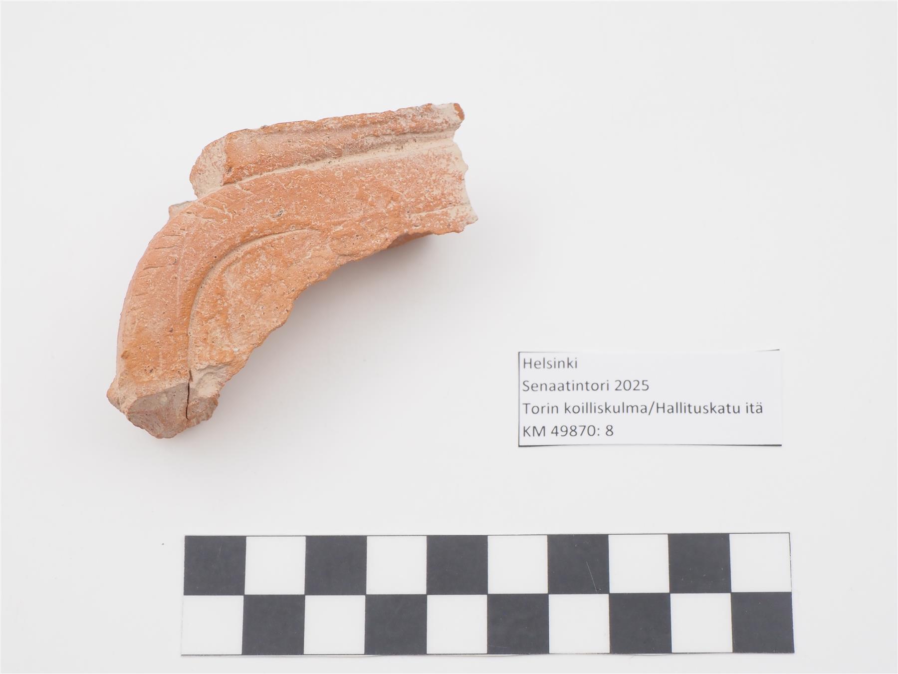 | Löytöyhteys: | Senaatintorin koilliskulman ja Hallituskadun itäosan kaivannon alueella olleesta Raatihuoneen purkukerroksesta rakenteiden yhteydestä |